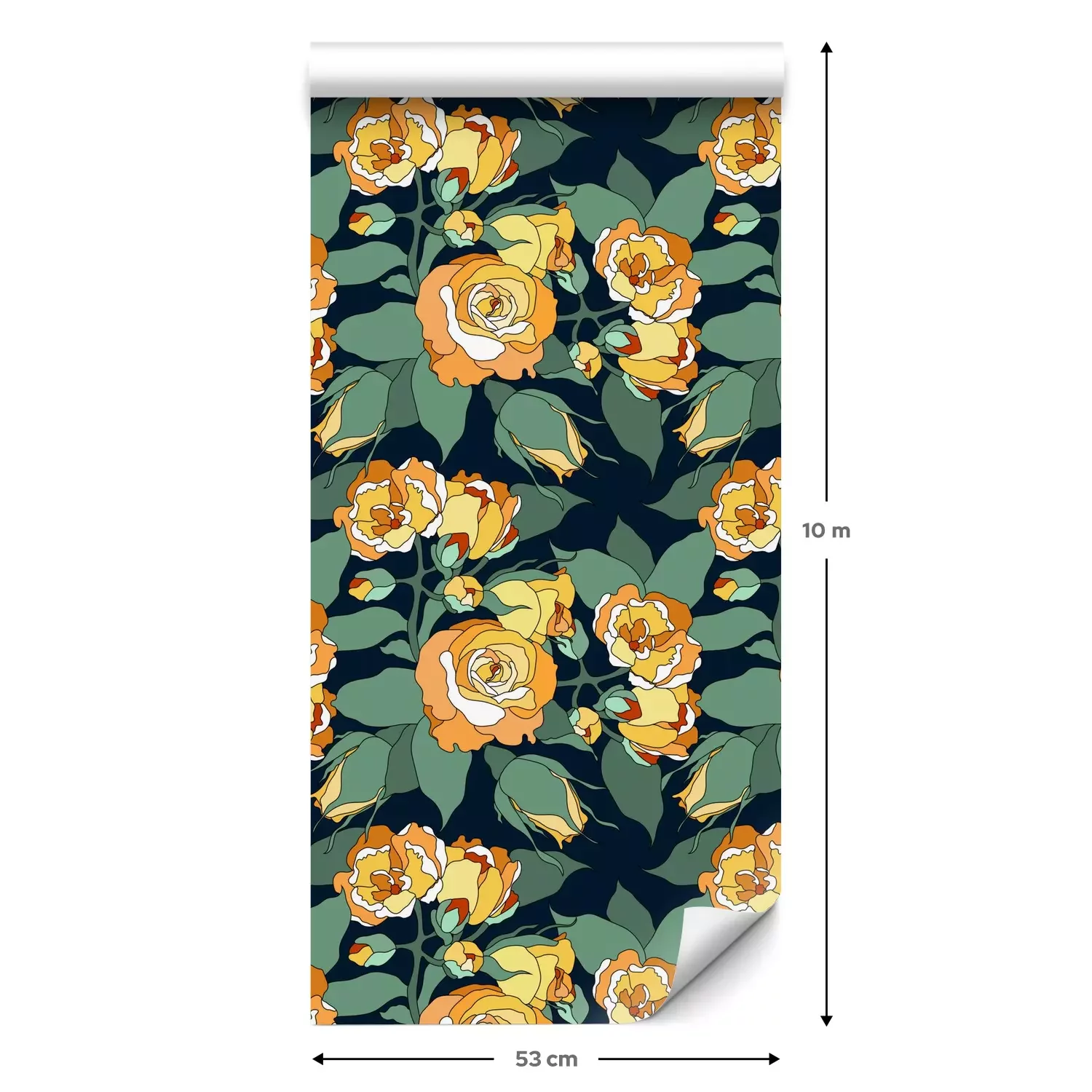 Een standaardrol behang heeft een afmeting van 0,53 m x 10 m, wat voldoende is om ongeveer 5 m² muur te bedekken.