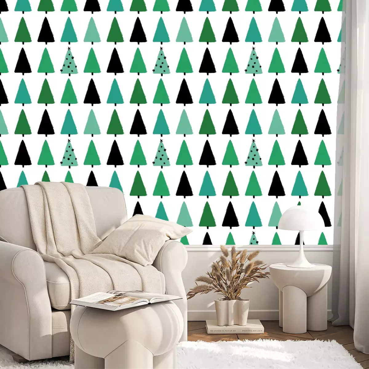 Abstracte groene kerstbomenBehang