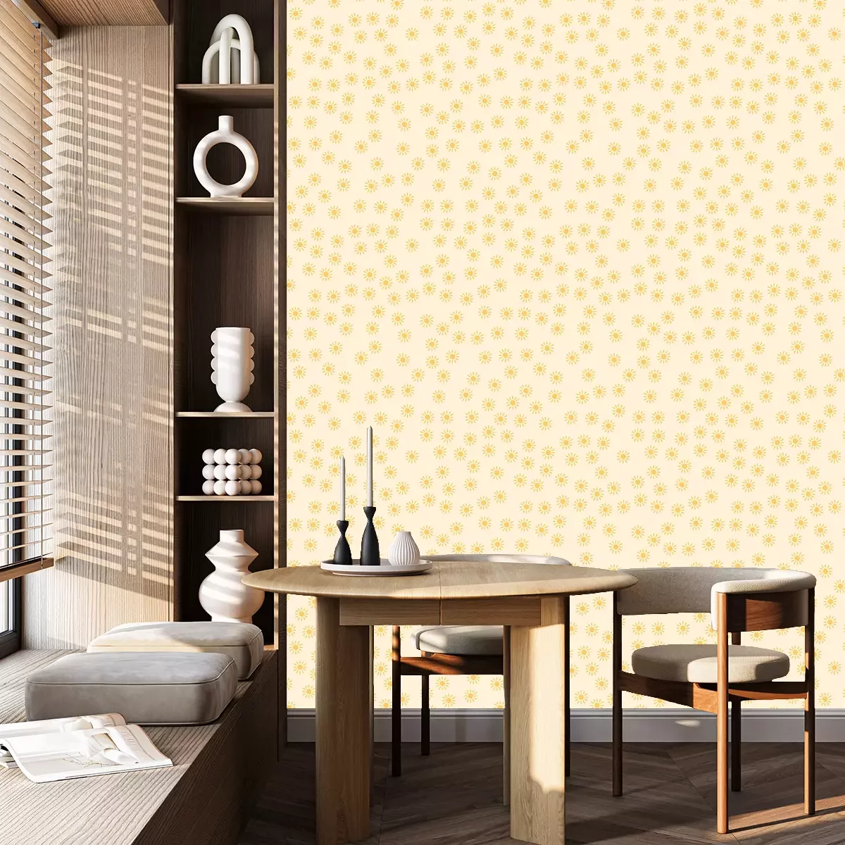 *Korting is niet van toepassing op lijmen, accessoires en cadeaubonnen.Het behang is gemaakt van hoogwaardig vliesmateriaal – duurzaam, stevig en eenvoudig aan te brengen. Op de productpagina vind je een gebruiksvriendelijke calculator die automatisch het aantal benodigde rollen berekent, zodat het winkelen nog makkelijker wordt. Het behang heeft een herhalend patroon dat we aanbieden in drie dichtheidsvarianten – normaal, gemiddeld en groot – waardoor je het motief perfect kunt afstemmen op de grootte van de ruimte. In onze winkel vind je duizenden ontwerpen, allemaal overzichtelijk ingedeeld in praktische categorieën.