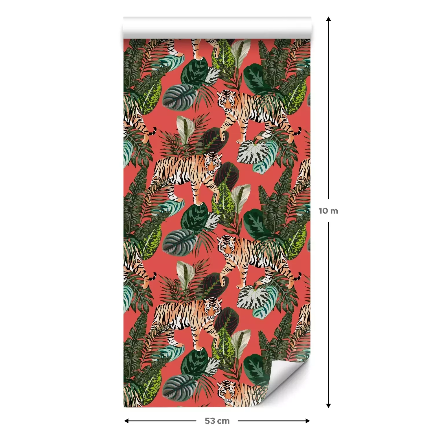 Een standaardrol behang heeft een afmeting van 0,53 m x 10 m, wat voldoende is om ongeveer 5 m² muur te bedekken.