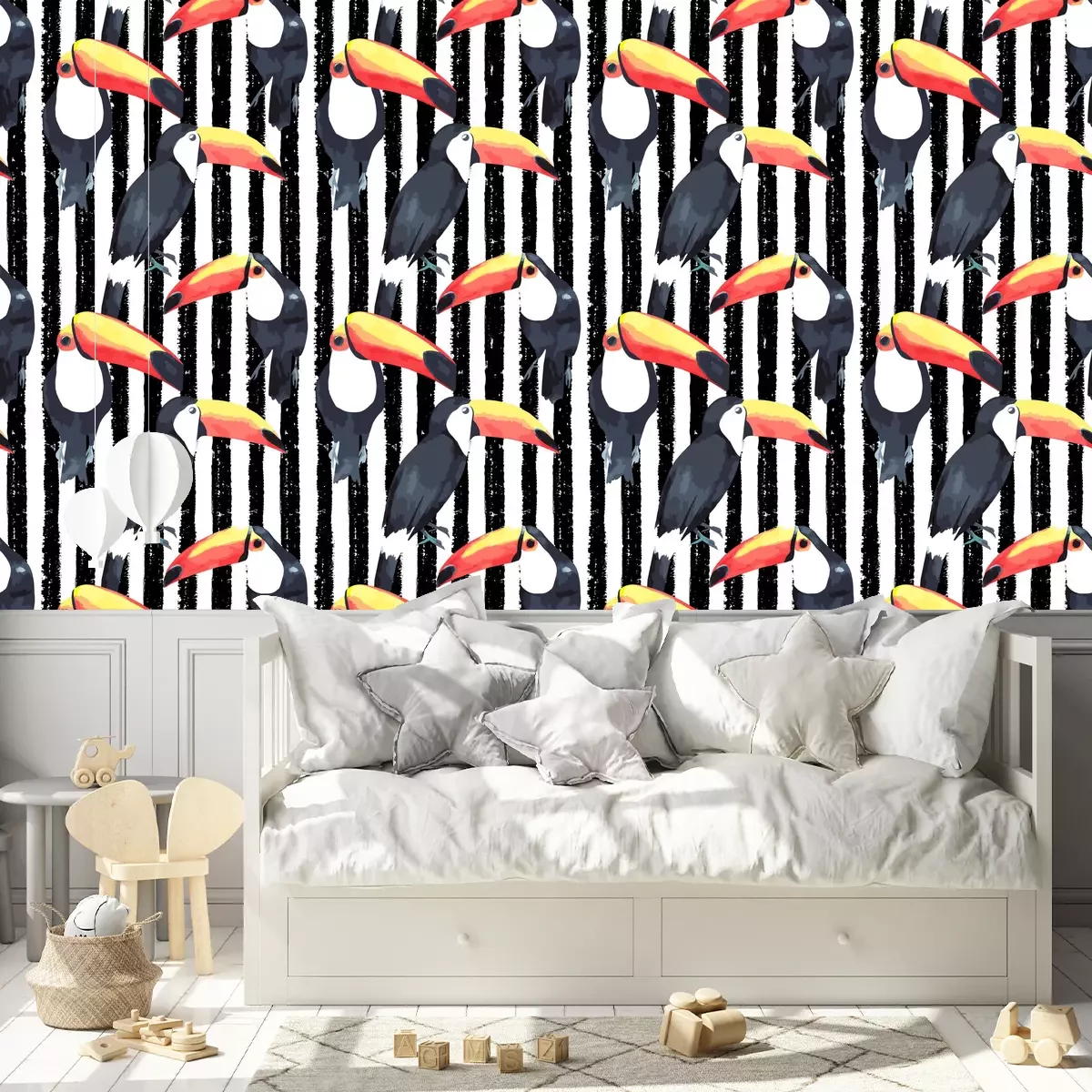 *Korting is niet van toepassing op lijmen, accessoires en cadeaubonnen.Het behang is gemaakt van hoogwaardig vliesmateriaal – duurzaam, stevig en eenvoudig aan te brengen. Op de productpagina vind je een gebruiksvriendelijke calculator die automatisch het aantal benodigde rollen berekent, zodat het winkelen nog makkelijker wordt. Het behang heeft een herhalend patroon dat we aanbieden in drie dichtheidsvarianten – normaal, gemiddeld en groot – waardoor je het motief perfect kunt afstemmen op de grootte van de ruimte. In onze winkel vind je duizenden ontwerpen, allemaal overzichtelijk ingedeeld in praktische categorieën.