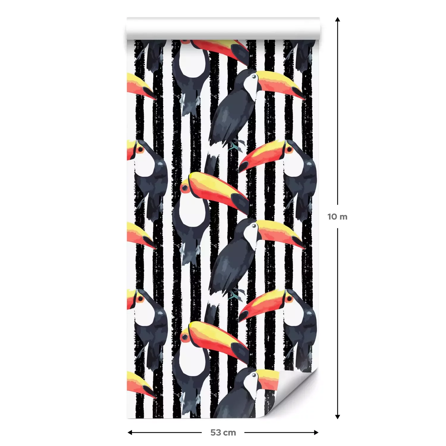 Een standaardrol behang heeft een afmeting van 0,53 m x 10 m, wat voldoende is om ongeveer 5 m² muur te bedekken.