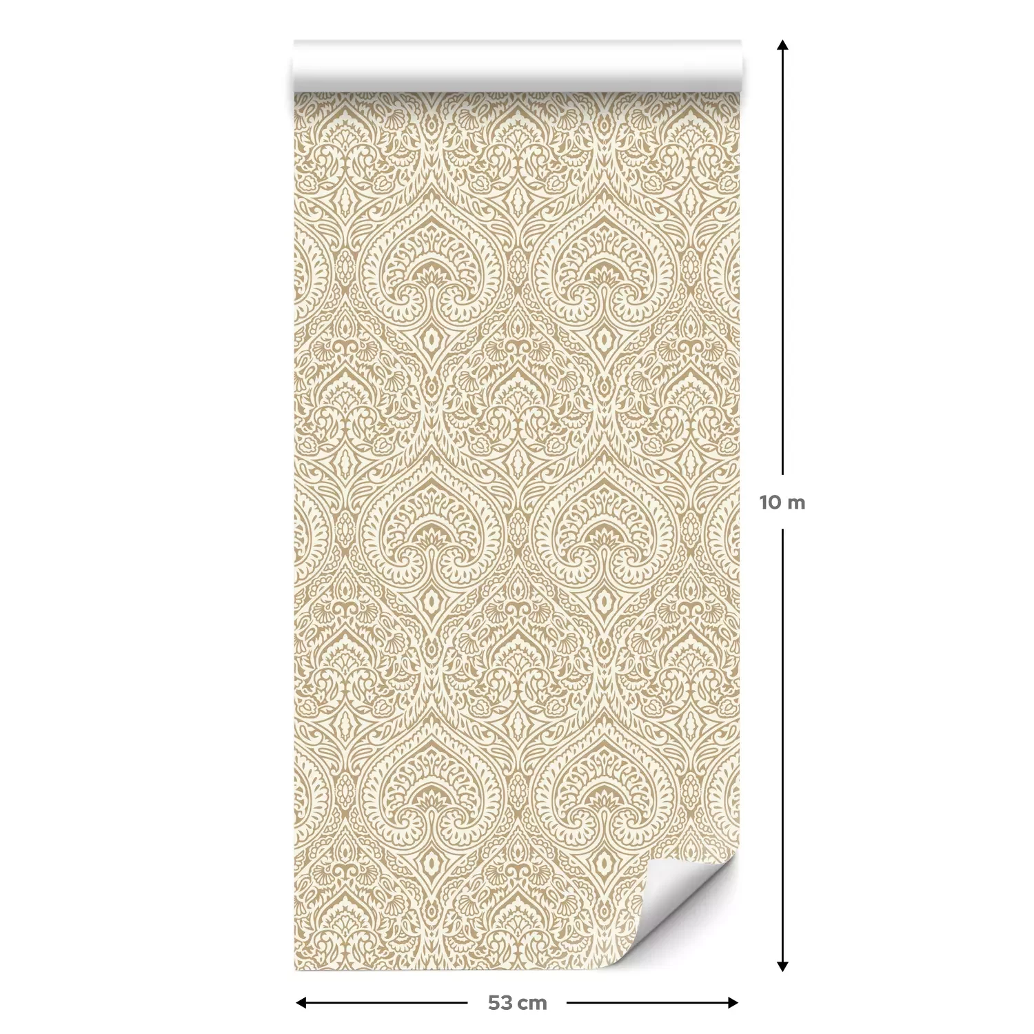 Een standaardrol behang heeft een afmeting van 0,53 m x 10 m, wat voldoende is om ongeveer 5 m² muur te bedekken.