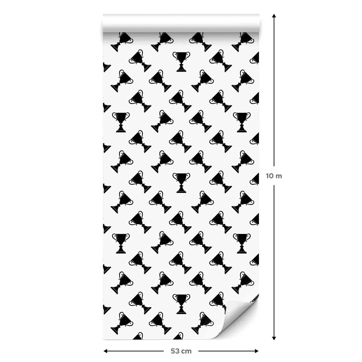 Een standaardrol behang heeft een afmeting van 0,53 m x 10 m, wat voldoende is om ongeveer 5 m² muur te bedekken.