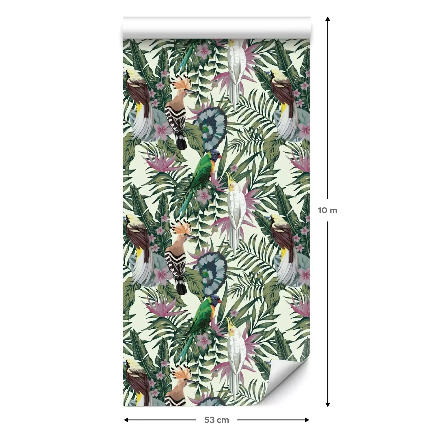 Een standaardrol behang heeft een afmeting van 0,53 m x 10 m, wat voldoende is om ongeveer 5 m² muur te bedekken.
