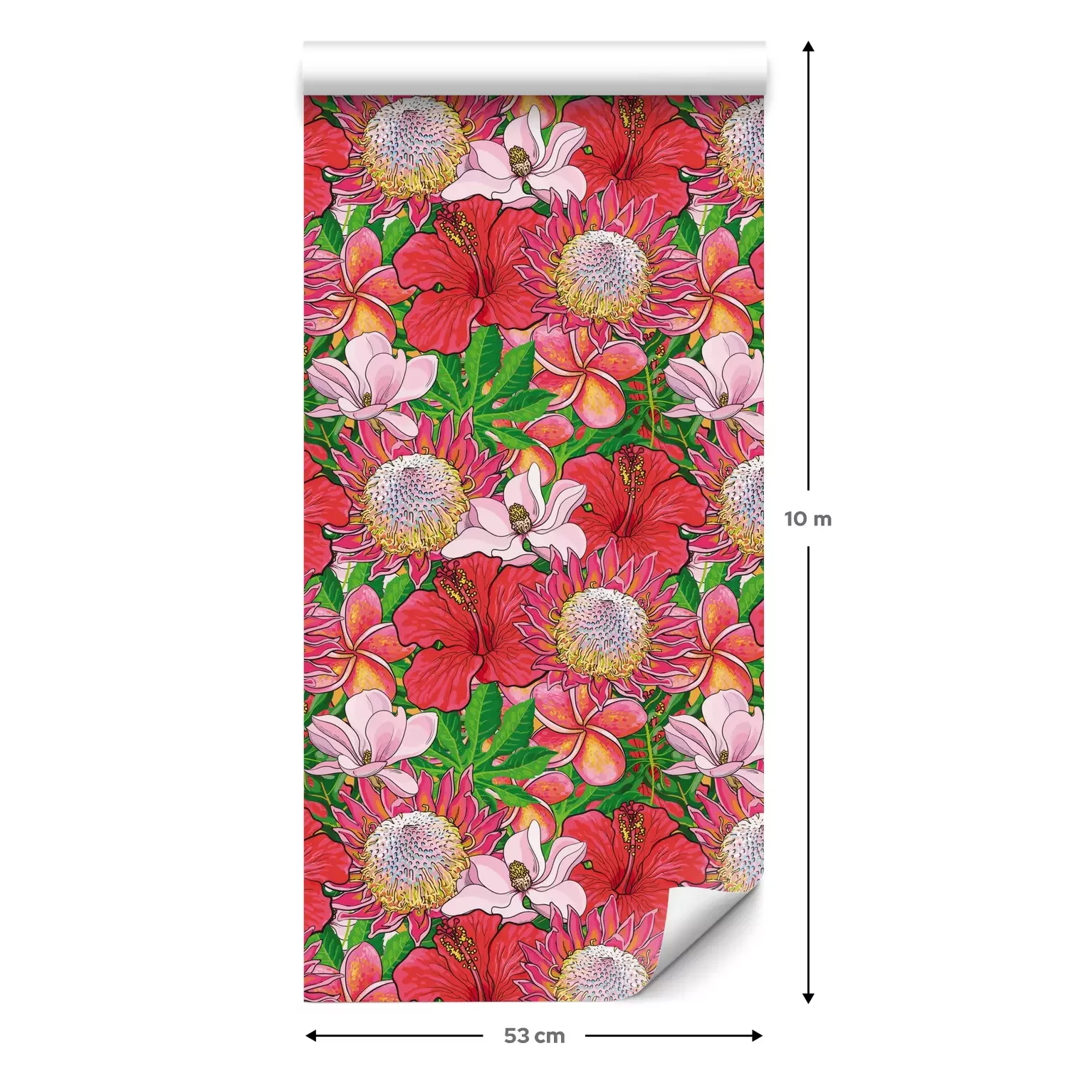 Een standaardrol behang heeft een afmeting van 0,53 m x 10 m, wat voldoende is om ongeveer 5 m² muur te bedekken.