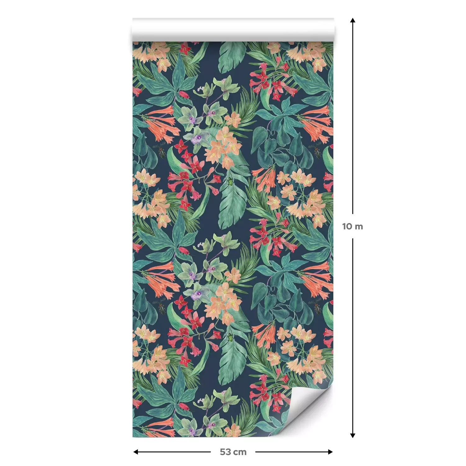 Een standaardrol behang heeft een afmeting van 0,53 m x 10 m, wat voldoende is om ongeveer 5 m² muur te bedekken.