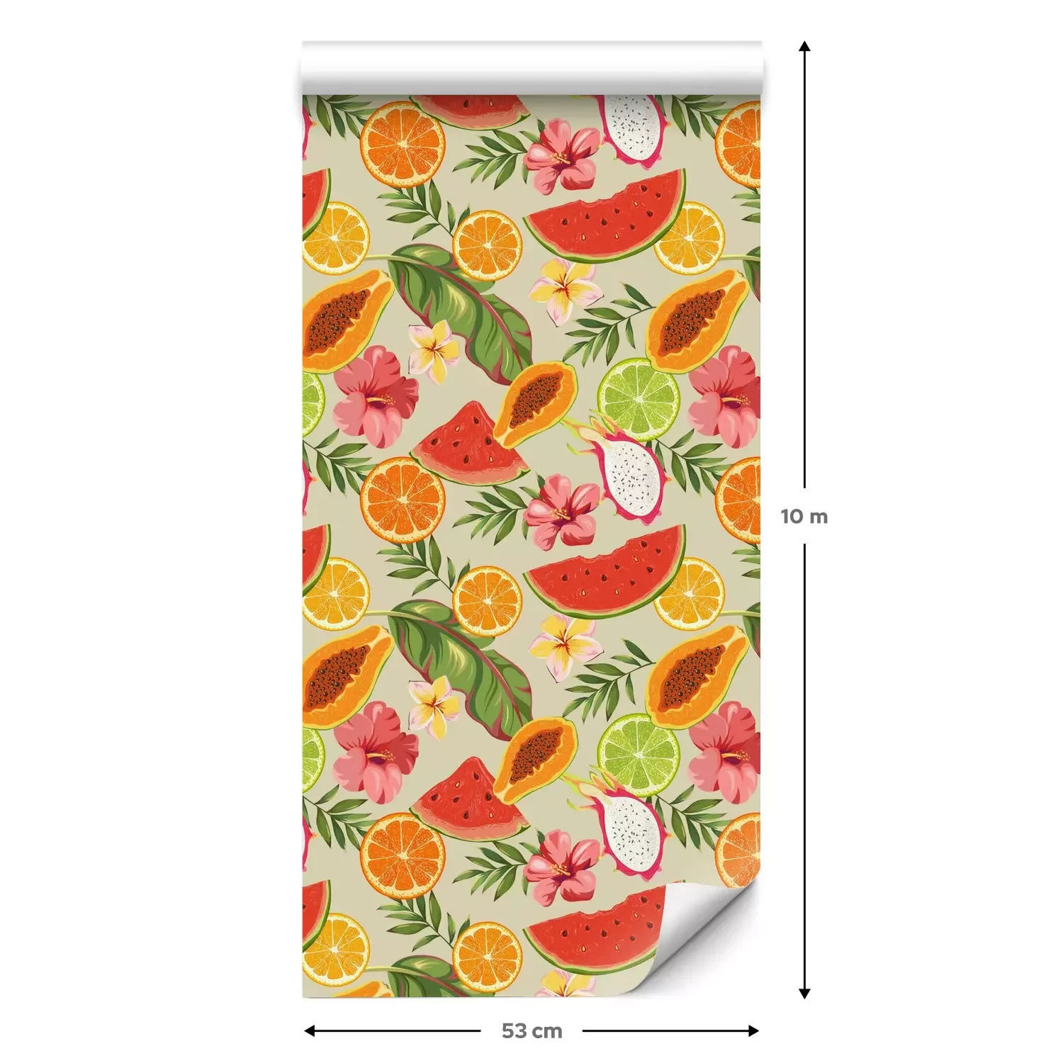 Een standaardrol behang heeft een afmeting van 0,53 m x 10 m, wat voldoende is om ongeveer 5 m² muur te bedekken.