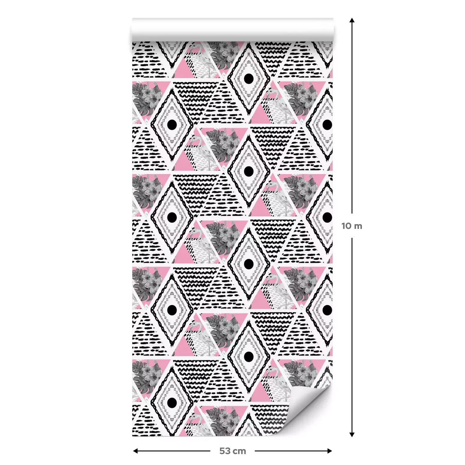 Een standaardrol behang heeft een afmeting van 0,53 m x 10 m, wat voldoende is om ongeveer 5 m² muur te bedekken.