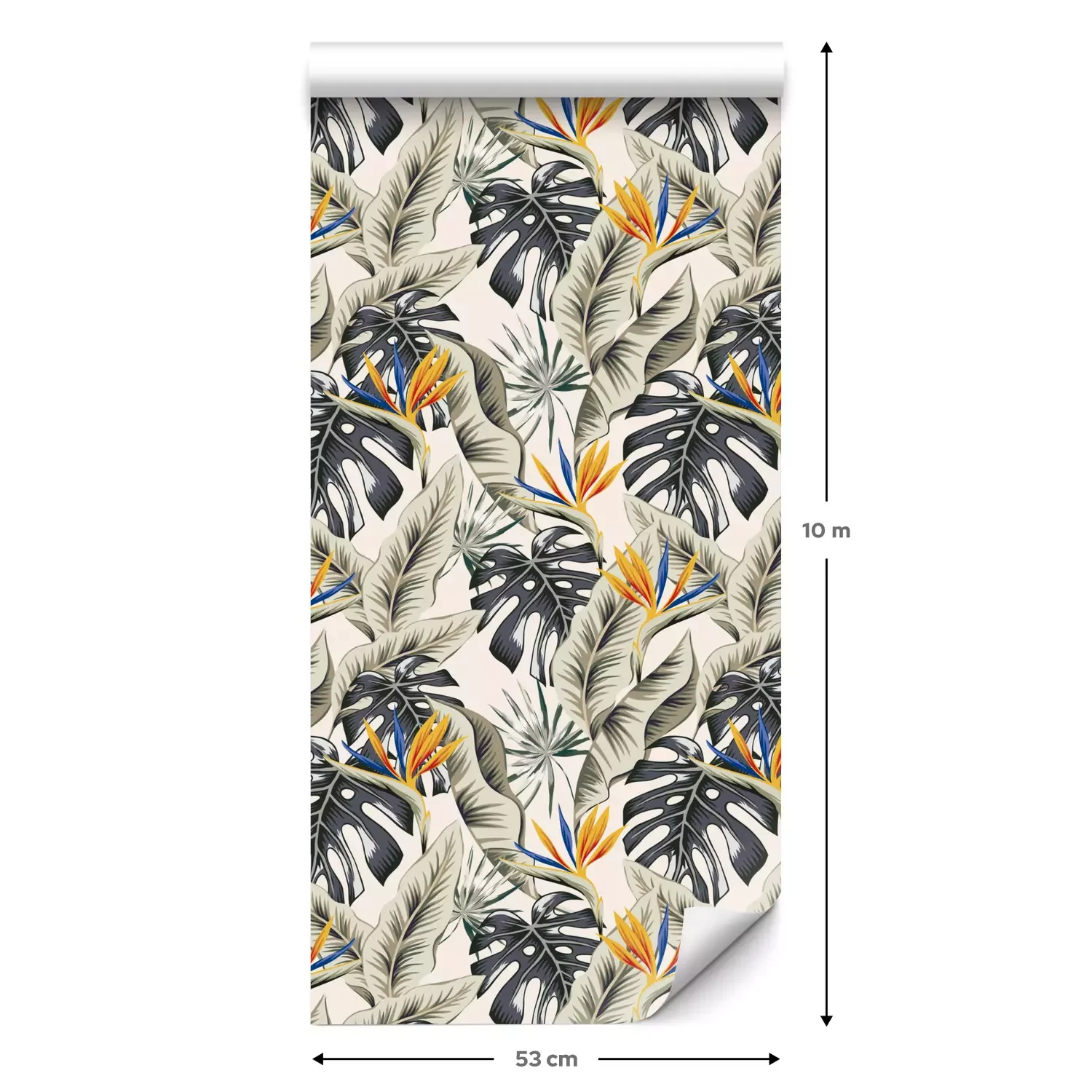 Een standaardrol behang heeft een afmeting van 0,53 m x 10 m, wat voldoende is om ongeveer 5 m² muur te bedekken.
