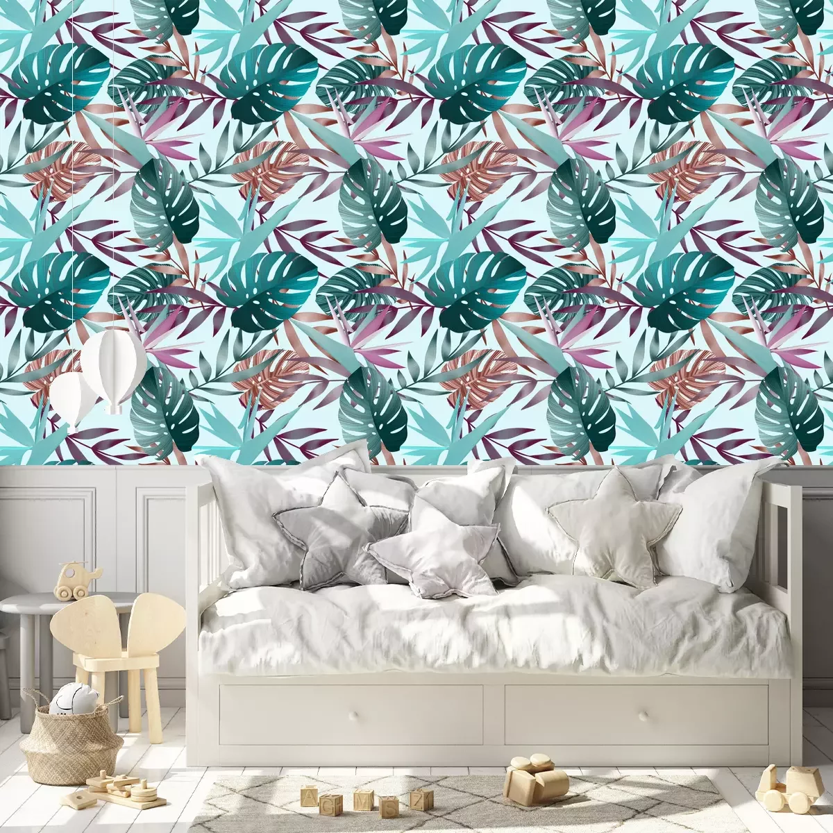 Het tropische behang met bladeren palm en monsterbladeren in blauw en paars is de perfecte toevoeging aan verschillende interieurs en brengt een vleugje exotisme en frisheid in je woning. Deze unieke decoratie is zo ontworpen dat de dicht op elkaar geplaatste palm- en monsterbladeren een indruk van indringendheid en diepte wekken en een uniek karakter en dynamiek aan de kamer toevoegen. Het belangrijkste kleurenkenmerk van het behang met bladeren is de blauwe achtergrond, die perfect past bij de overheersende blauwe en paarse kleurstelling van de bladeren. Dit behang zal een kamer harmonieus verlevendigen en een sfeer van rust creëren, terwijl het tegelijkertijd refereert aan kleuren die bekend zijn uit tropische paradijselijke landschappen. Hierdoor past dit behang perfect bij interieurs in boho-stijl. Blad roept herinneringen op aan vakanties in de tropen en zorgt voor een opgeruimde, natuurlijke sfeer. Niet alleen boho interieurs, maar ook minimalistische ruimtes kunnen hun voordeel doen met de charme van dit behang. Bladeren in een intens blauw en paars kleurenschema vormen het dominante ontwerpelement, voegen karakter toe en vallen op. Hierdoor is deze decoratie in staat om een uniek, gewaagd interieur te creëren dat de eenvoud en elegantie van een minimalistische stijl uitstraalt. Het gepresenteerde behang blad past goed bij interieurs die zijn ingericht in de geest van tropische esthetiek. Het bloemmotief en de kleuren verwijzen naar de weelderige natuur van de tropen en creëren een sfeer van ontspanning en ontsnapping aan het dagelijks leven. Hiermee kun je gezellige interieurs creëren die doen denken aan vakanties en de ruimte een uniek zomers en zonnig gevoel geven. Met zo'n behang voeren de bladeren je dromerig mee naar zandstranden met azuurblauw water. Laten we de voordelen van een dergelijk behang eens nader bekijken. De tropische bladeren op het patroon imiteren de indruk van driedimensionaliteit en diepte, zodat je de indruk krijgt dat de kamer groter lijkt dan hij in werkelijkheid is. De intense kleuren en het tropische motief voegen energie en levendigheid toe en brengen een positieve sfeer in het interieur. Het behang met bladeren kan dienen als het perfecte middelpunt van een arrangement, trekt de aandacht en geeft de kamer een uniek karakter.