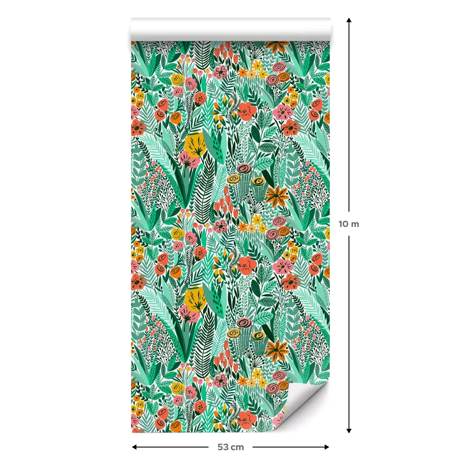 Een standaardrol behang heeft een afmeting van 0,53 m x 10 m, wat voldoende is om ongeveer 5 m² muur te bedekken.