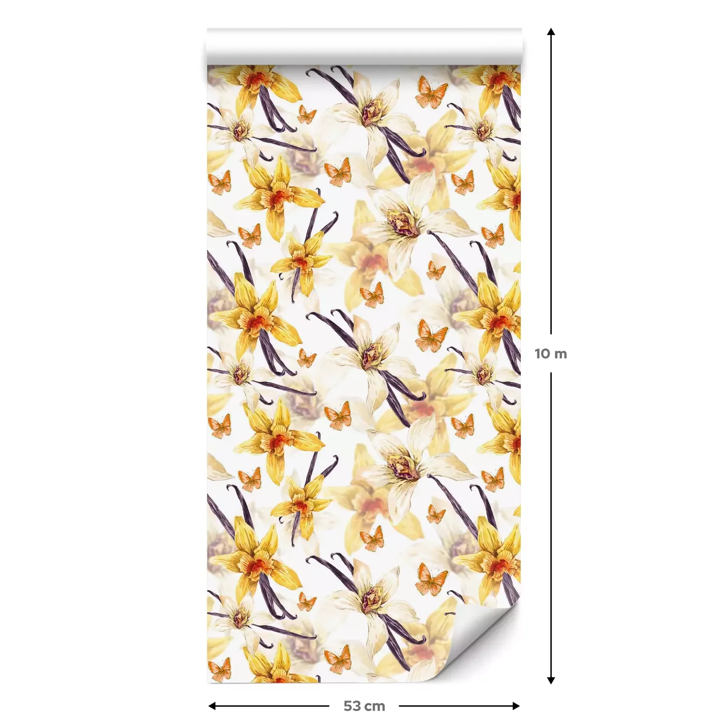 Een standaardrol behang heeft een afmeting van 0,53 m x 10 m, wat voldoende is om ongeveer 5 m² muur te bedekken.