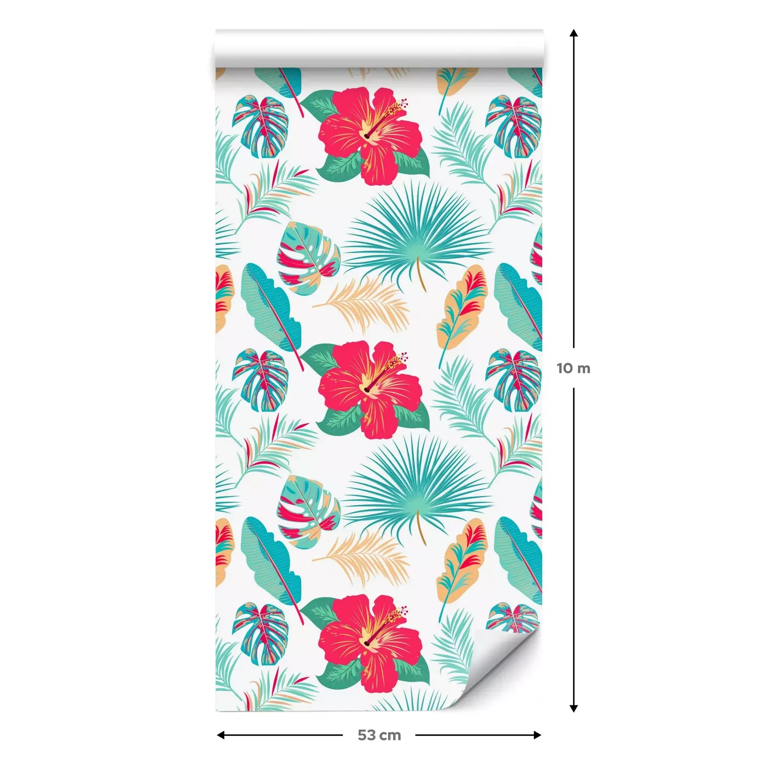 Een standaardrol behang heeft een afmeting van 0,53 m x 10 m, wat voldoende is om ongeveer 5 m² muur te bedekken.