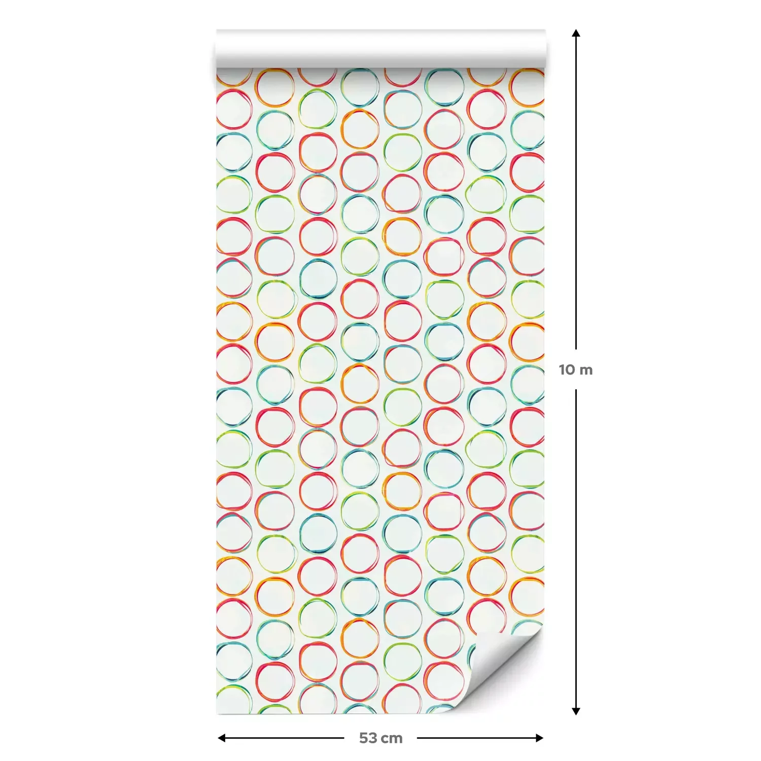 Een standaardrol behang heeft een afmeting van 0,53 m x 10 m, wat voldoende is om ongeveer 5 m² muur te bedekken.