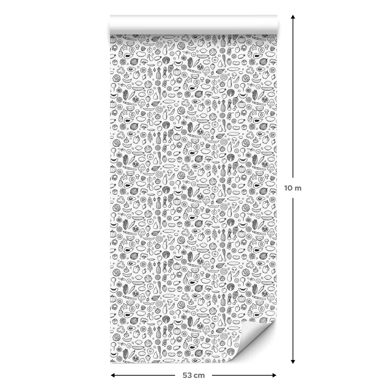 Een standaardrol behang heeft een afmeting van 0,53 m x 10 m, wat voldoende is om ongeveer 5 m² muur te bedekken.