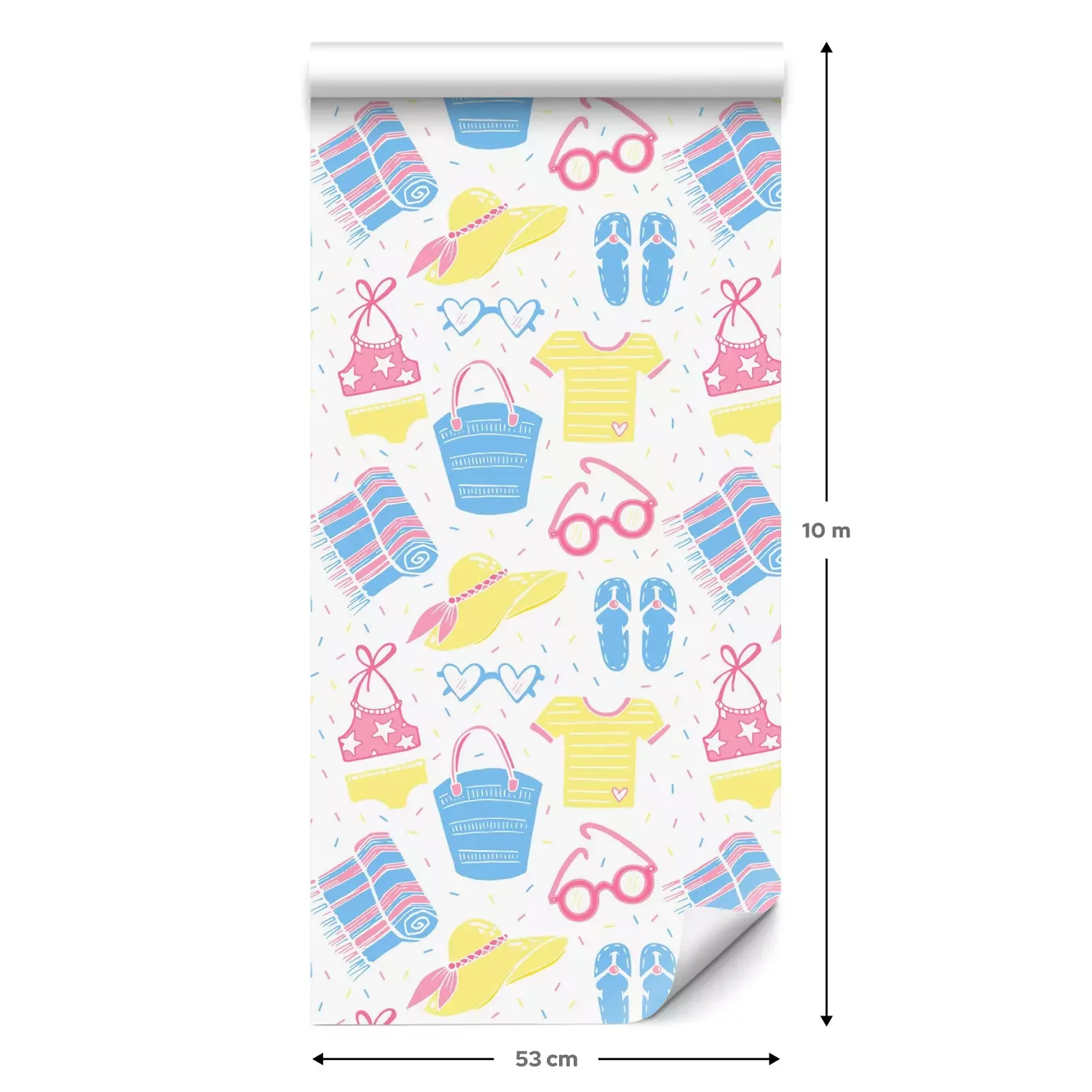 Een standaardrol behang heeft een afmeting van 0,53 m x 10 m, wat voldoende is om ongeveer 5 m² muur te bedekken.