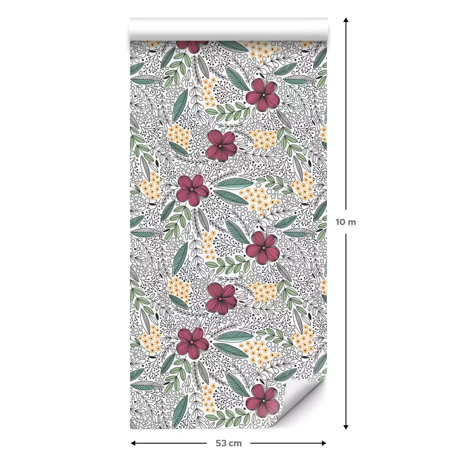 Een standaardrol behang heeft een afmeting van 0,53 m x 10 m, wat voldoende is om ongeveer 5 m² muur te bedekken.