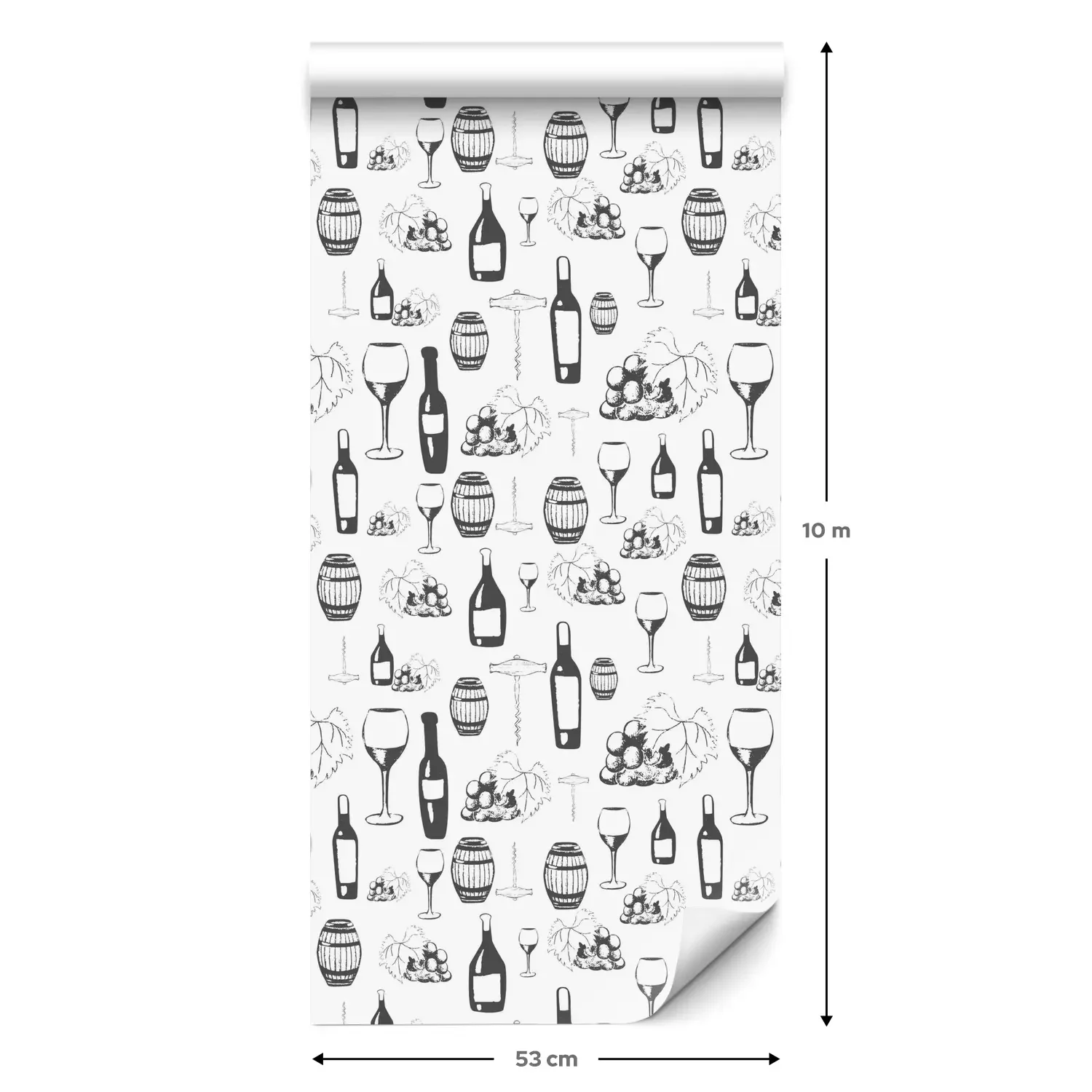 Een standaardrol behang heeft een afmeting van 0,53 m x 10 m, wat voldoende is om ongeveer 5 m² muur te bedekken.