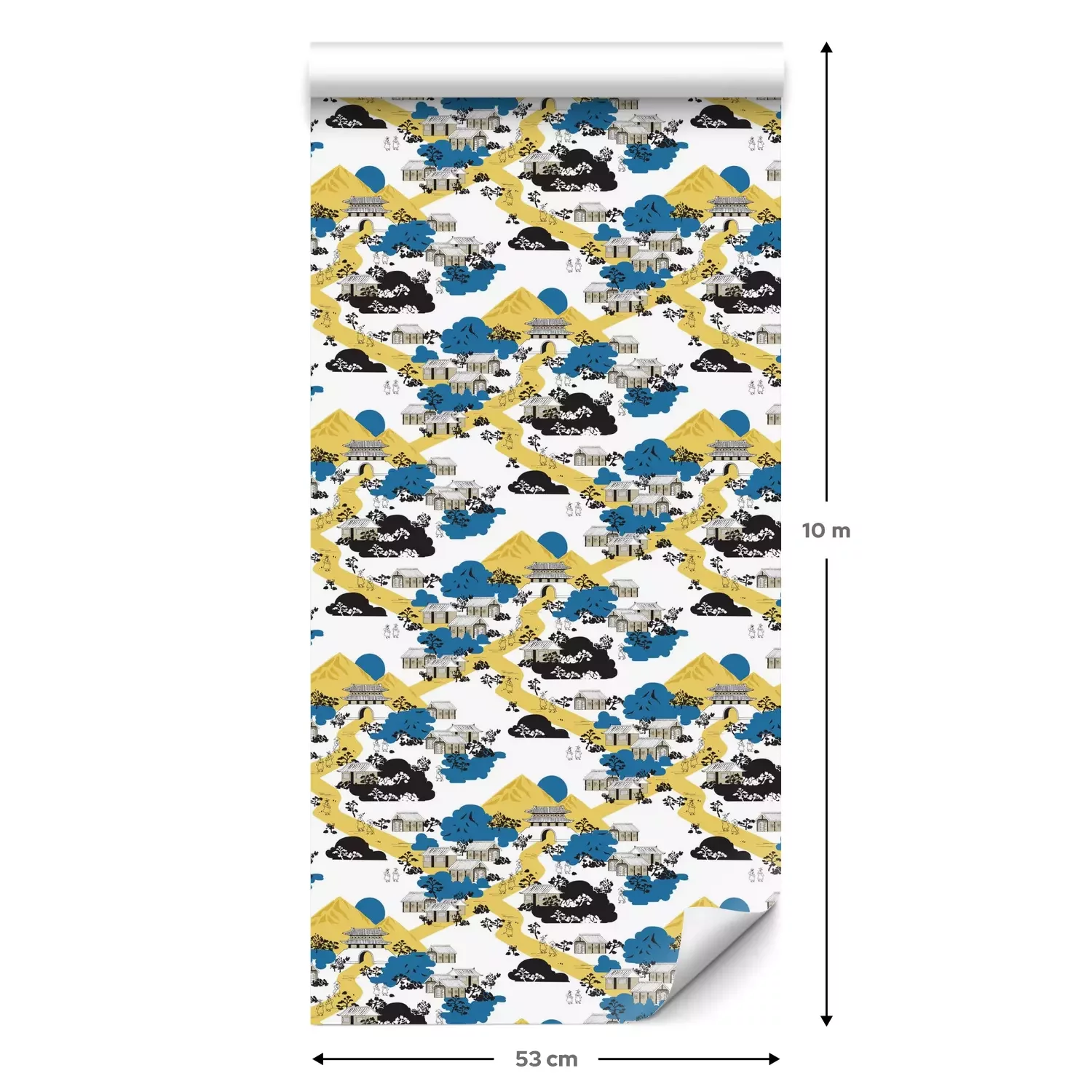 Een standaardrol behang heeft een afmeting van 0,53 m x 10 m, wat voldoende is om ongeveer 5 m² muur te bedekken.
