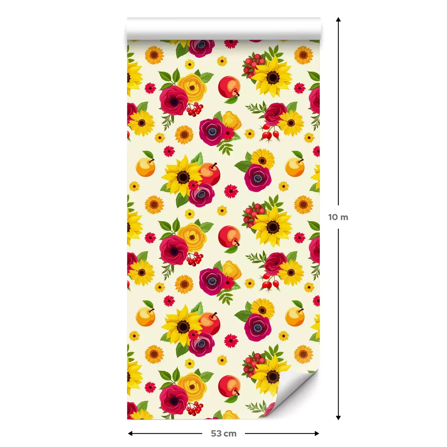 Een standaardrol behang heeft een afmeting van 0,53 m x 10 m, wat voldoende is om ongeveer 5 m² muur te bedekken.
