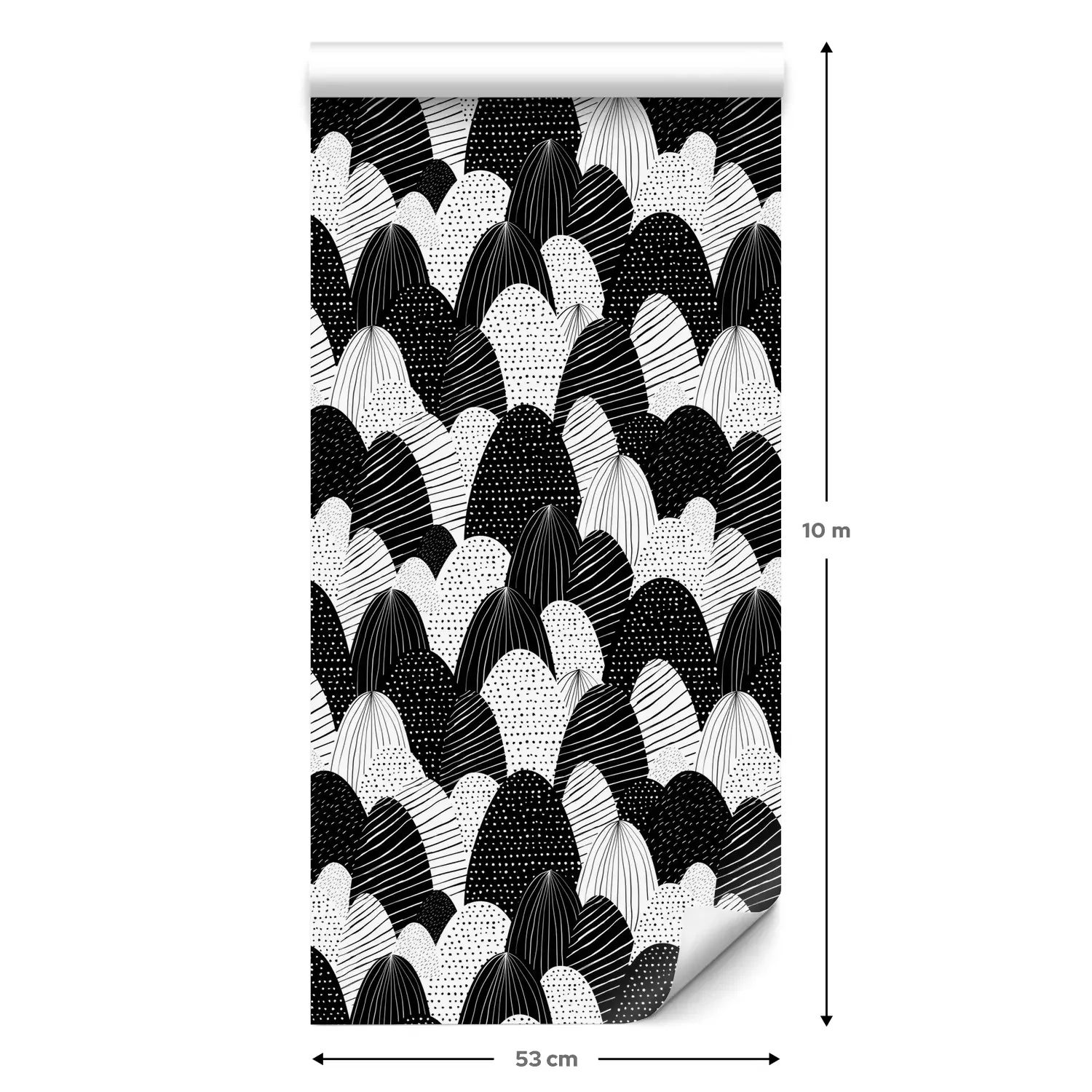 Een standaardrol behang heeft een afmeting van 0,53 m x 10 m, wat voldoende is om ongeveer 5 m² muur te bedekken.