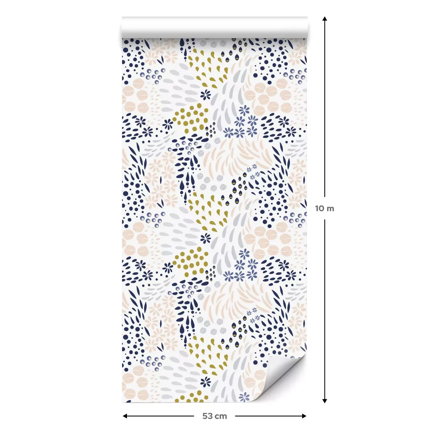Een standaardrol behang heeft een afmeting van 0,53 m x 10 m, wat voldoende is om ongeveer 5 m² muur te bedekken.