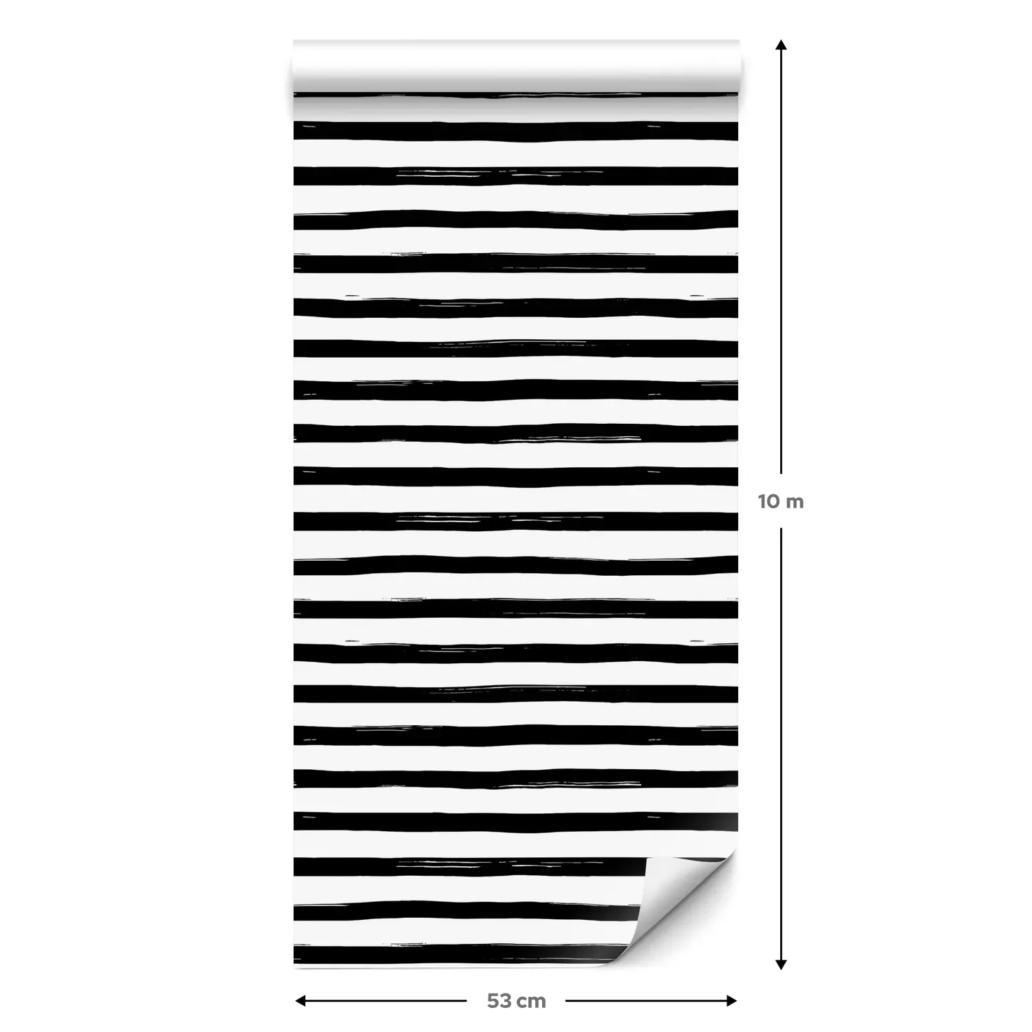 Een standaardrol behang heeft een afmeting van 0,53 m x 10 m, wat voldoende is om ongeveer 5 m² muur te bedekken.