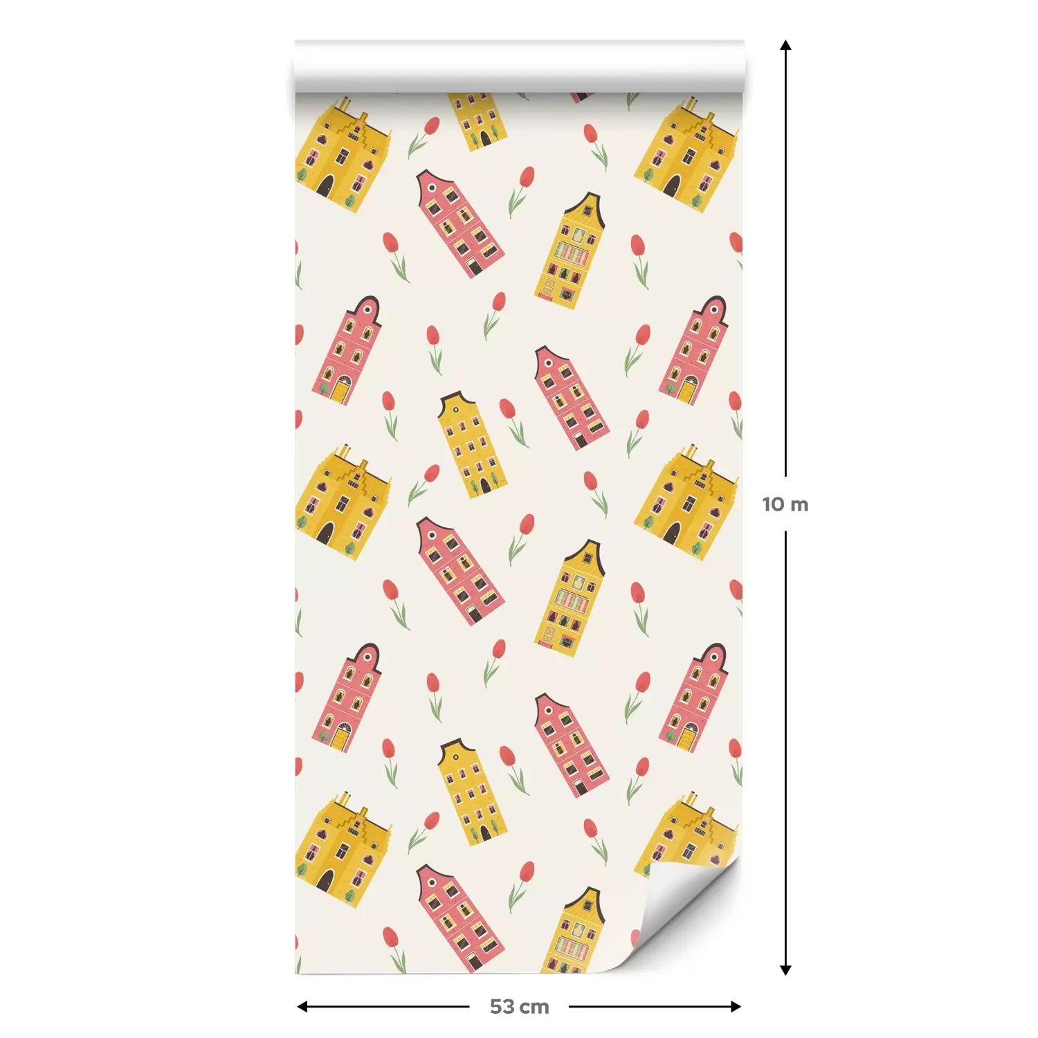 Een standaardrol behang heeft een afmeting van 0,53 m x 10 m, wat voldoende is om ongeveer 5 m² muur te bedekken.