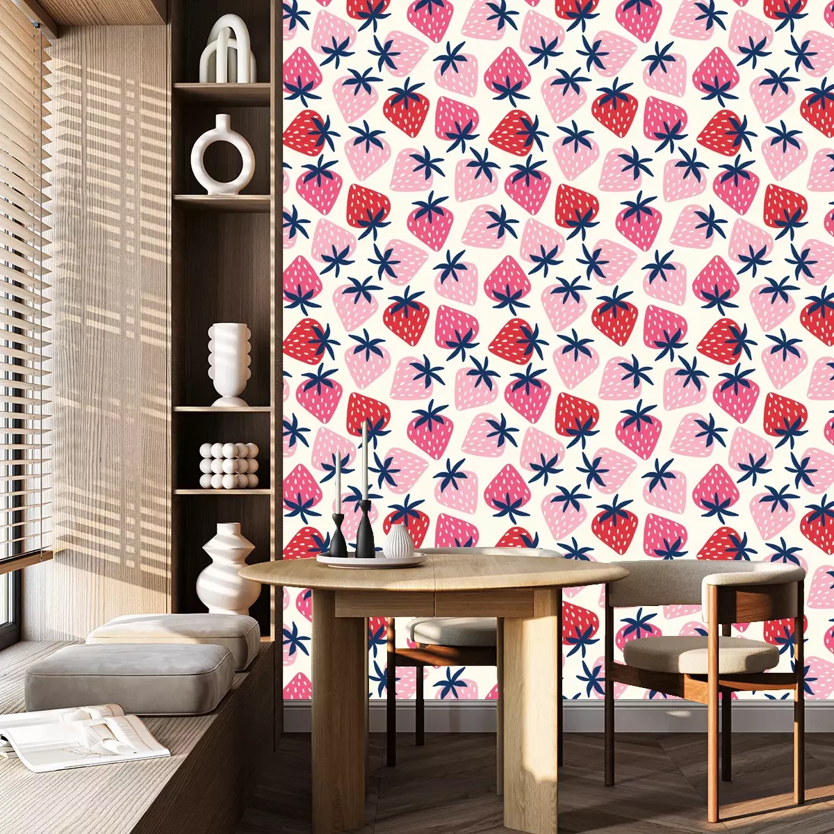 *Korting is niet van toepassing op lijmen, accessoires en cadeaubonnen.Het behang is gemaakt van hoogwaardig vliesmateriaal – duurzaam, stevig en eenvoudig aan te brengen. Op de productpagina vind je een gebruiksvriendelijke calculator die automatisch het aantal benodigde rollen berekent, zodat het winkelen nog makkelijker wordt. Het behang heeft een herhalend patroon dat we aanbieden in drie dichtheidsvarianten – normaal, gemiddeld en groot – waardoor je het motief perfect kunt afstemmen op de grootte van de ruimte. In onze winkel vind je duizenden ontwerpen, allemaal overzichtelijk ingedeeld in praktische categorieën.