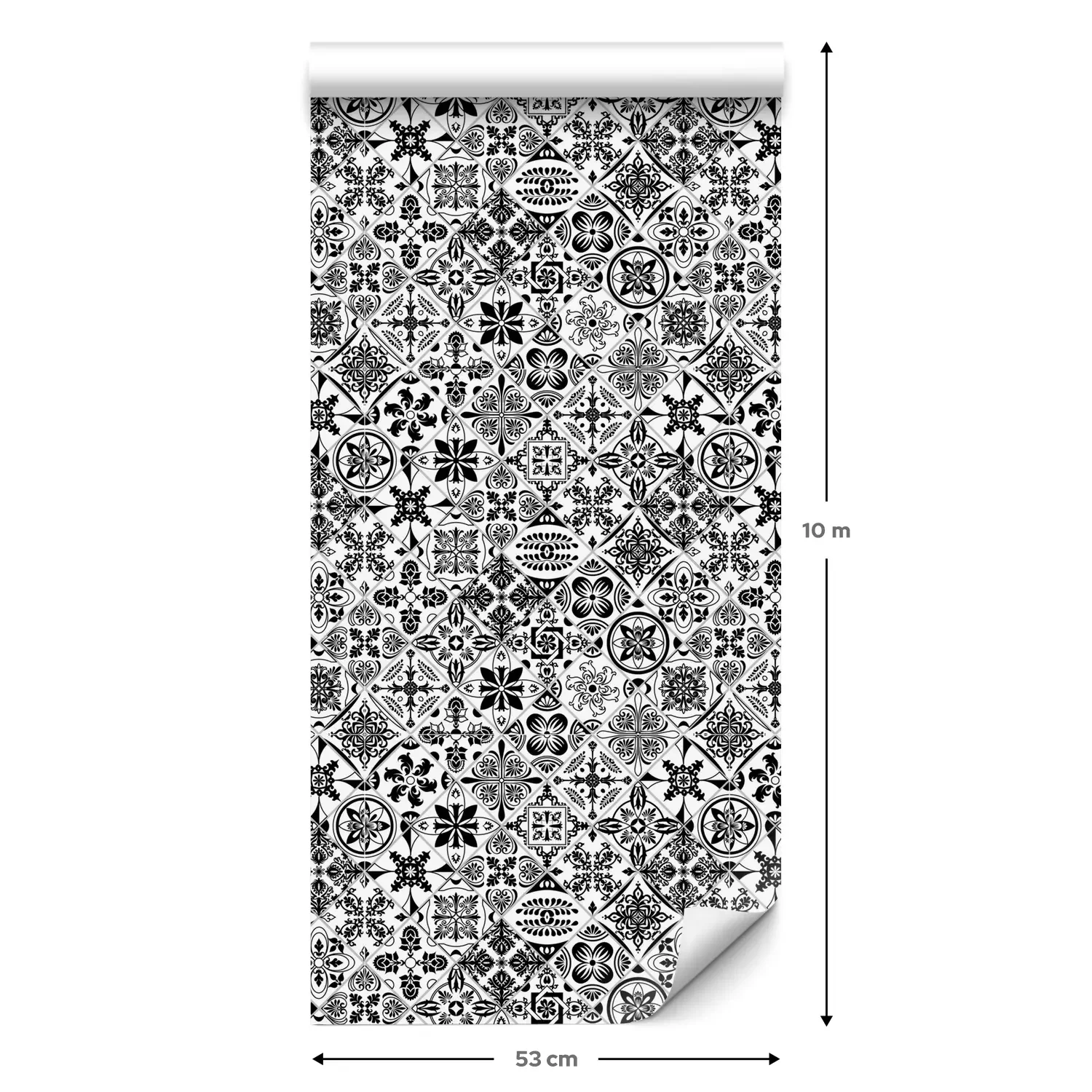 Een standaardrol behang heeft een afmeting van 0,53 m x 10 m, wat voldoende is om ongeveer 5 m² muur te bedekken.