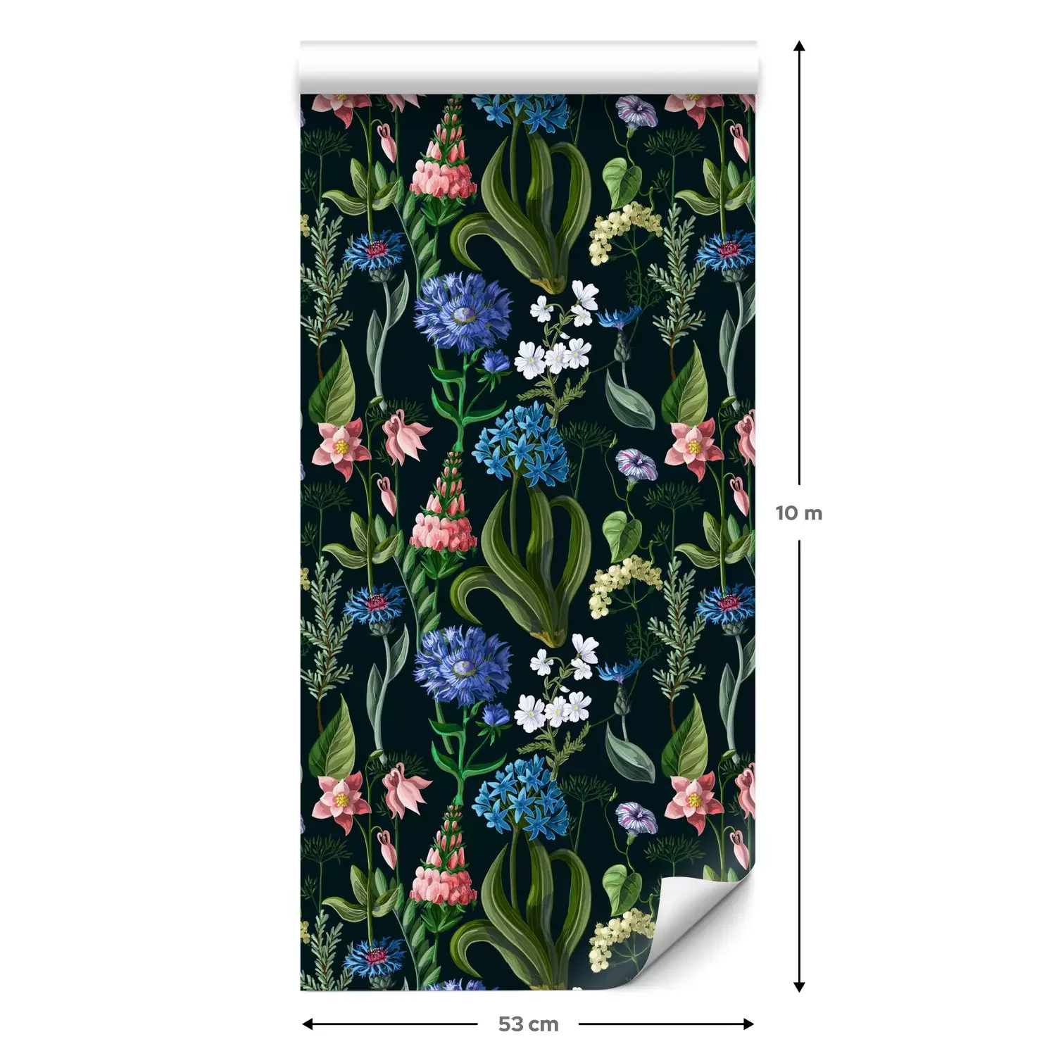Een standaardrol behang heeft een afmeting van 0,53 m x 10 m, wat voldoende is om ongeveer 5 m² muur te bedekken.