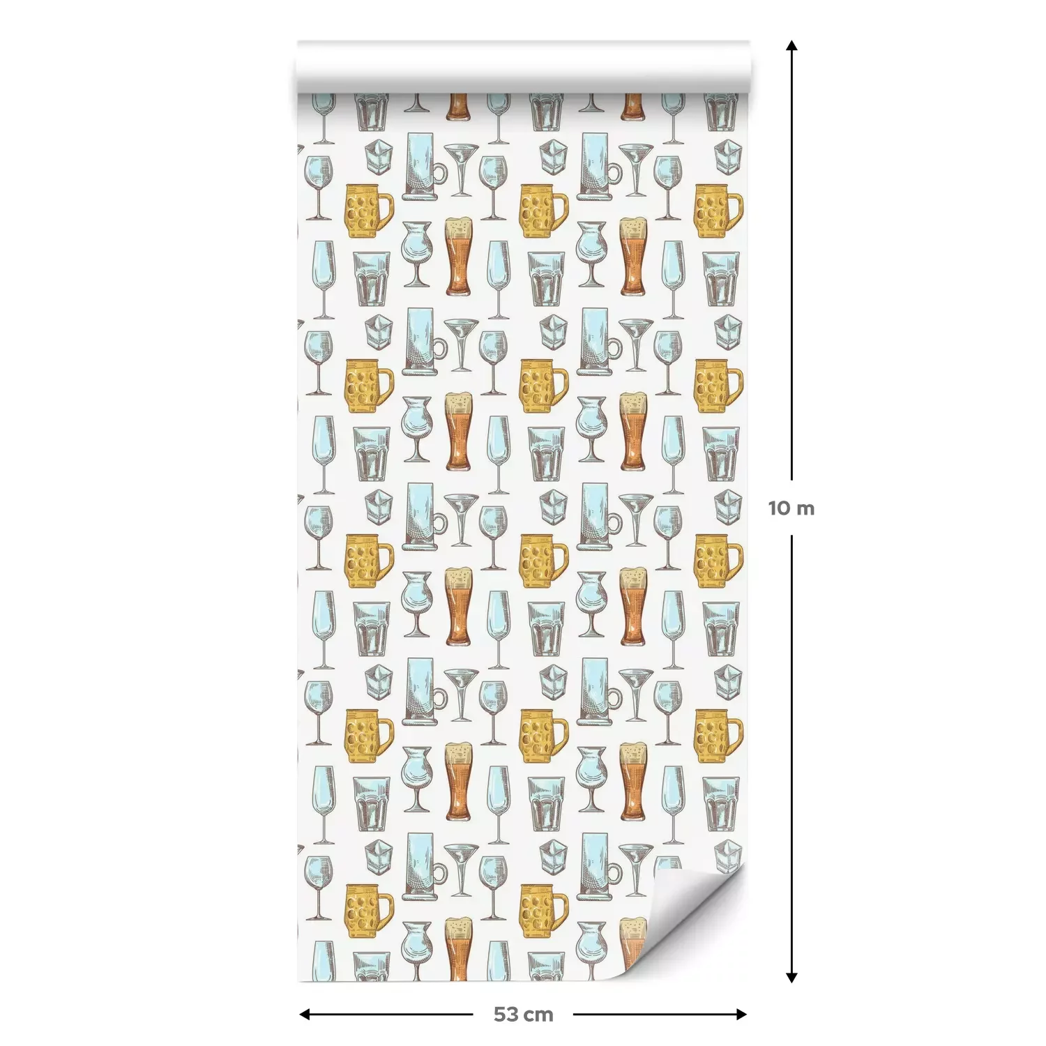 Een standaardrol behang heeft een afmeting van 0,53 m x 10 m, wat voldoende is om ongeveer 5 m² muur te bedekken.