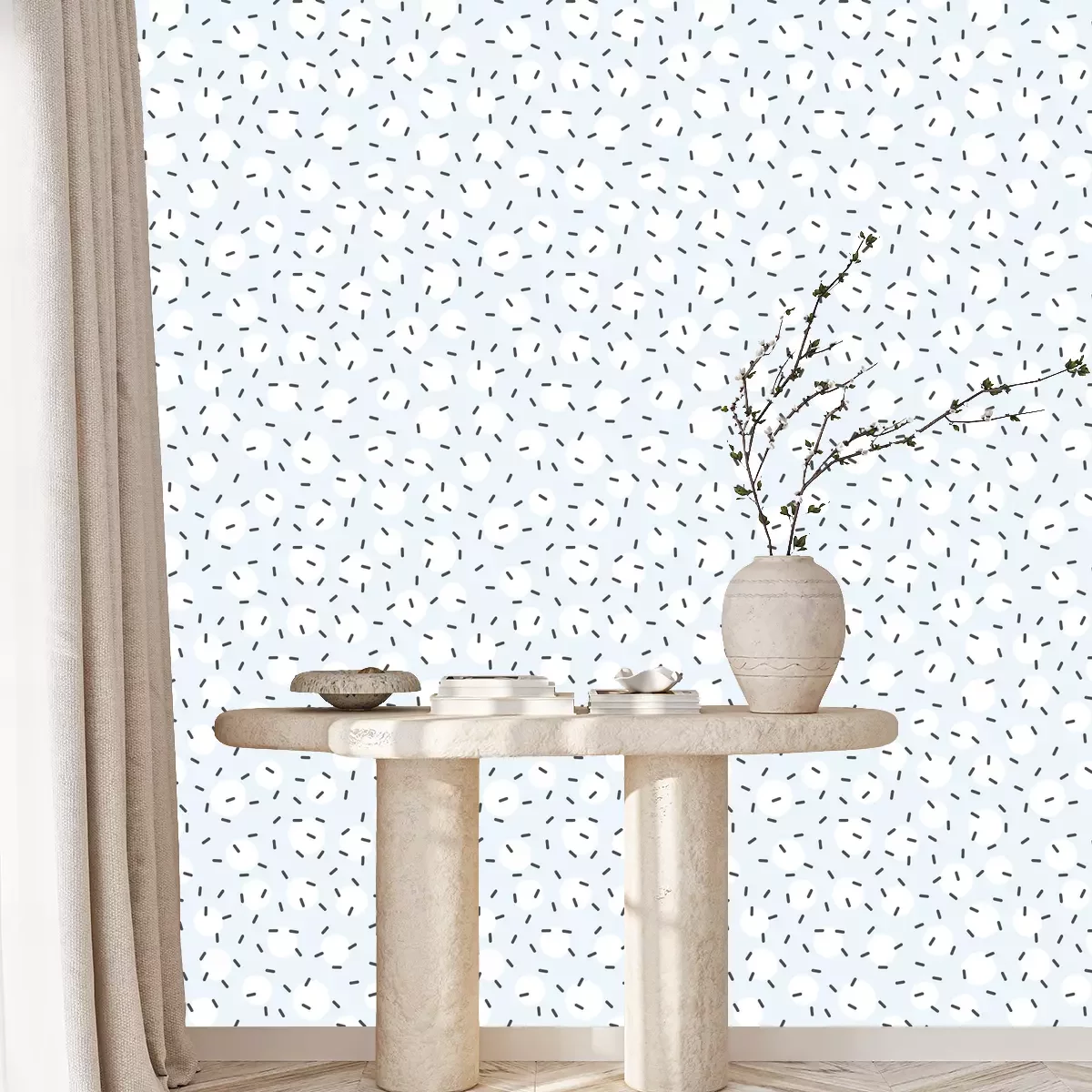 *Korting is niet van toepassing op lijmen, accessoires en cadeaubonnen.Het behang is gemaakt van hoogwaardig vliesmateriaal – duurzaam, stevig en eenvoudig aan te brengen. Op de productpagina vind je een gebruiksvriendelijke calculator die automatisch het aantal benodigde rollen berekent, zodat het winkelen nog makkelijker wordt. Het behang heeft een herhalend patroon dat we aanbieden in drie dichtheidsvarianten – normaal, gemiddeld en groot – waardoor je het motief perfect kunt afstemmen op de grootte van de ruimte. In onze winkel vind je duizenden ontwerpen, allemaal overzichtelijk ingedeeld in praktische categorieën.