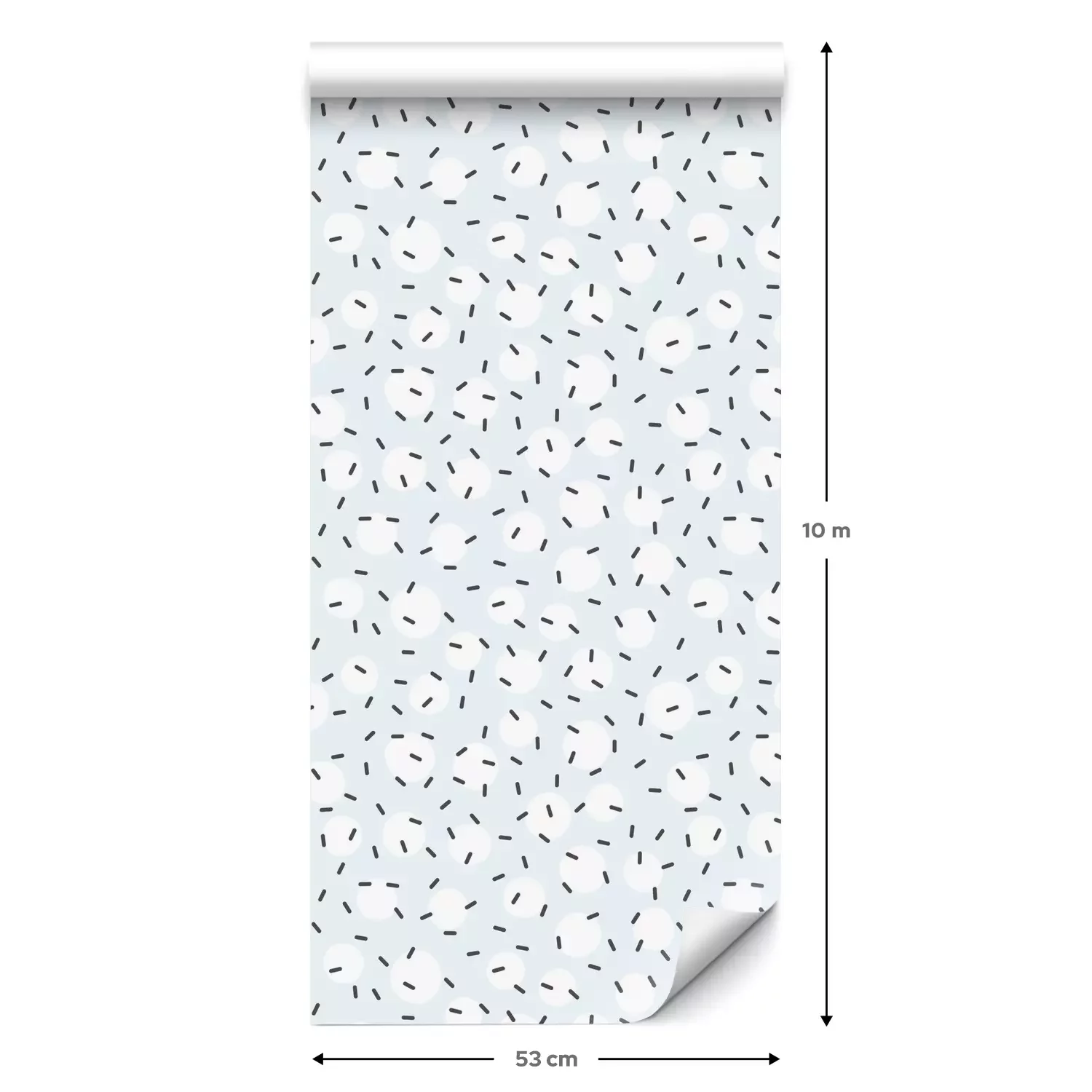 Een standaardrol behang heeft een afmeting van 0,53 m x 10 m, wat voldoende is om ongeveer 5 m² muur te bedekken.