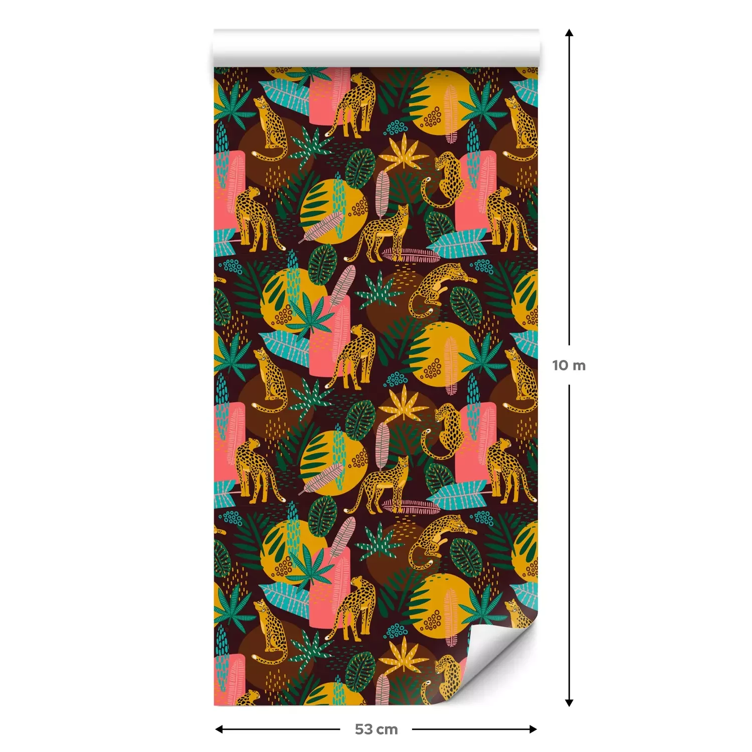 Een standaardrol behang heeft een afmeting van 0,53 m x 10 m, wat voldoende is om ongeveer 5 m² muur te bedekken.