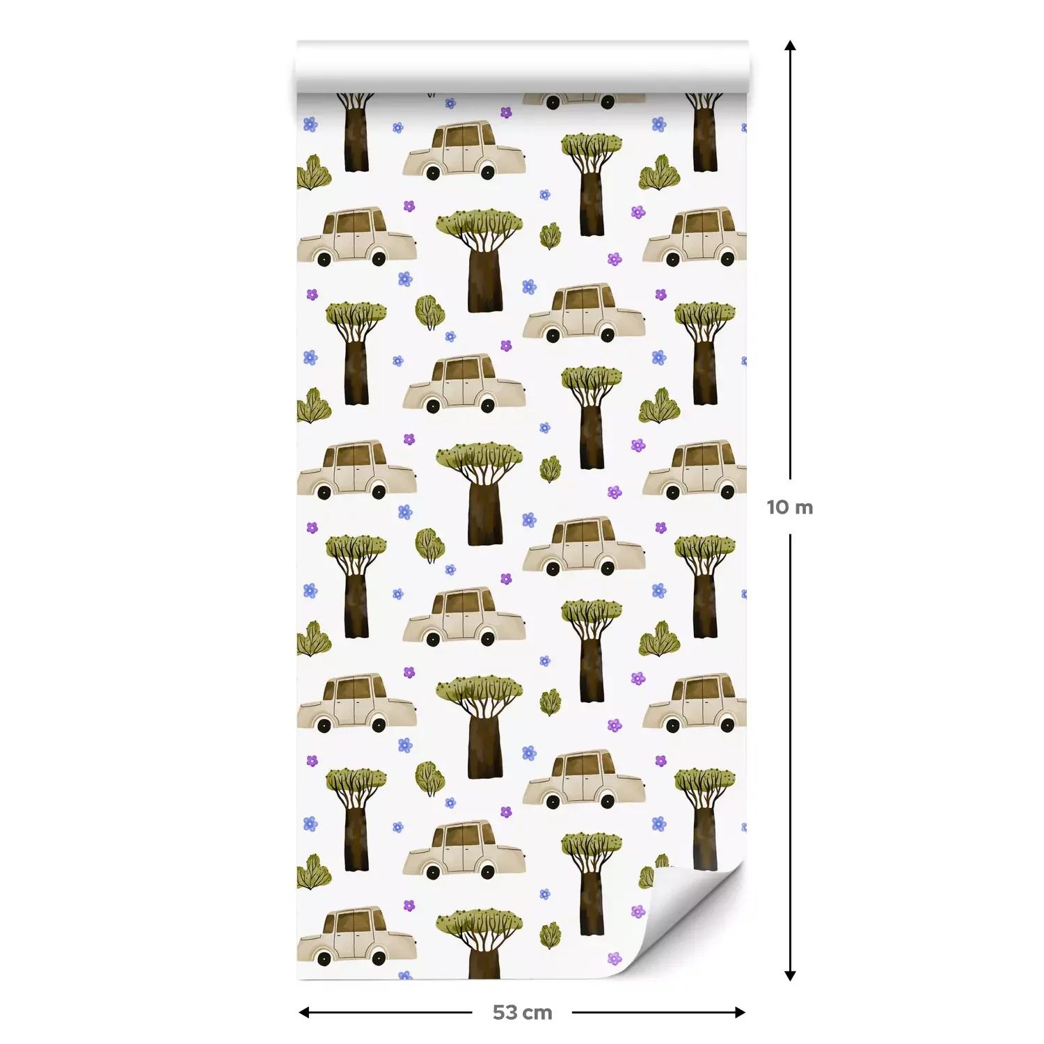 Een standaardrol behang heeft een afmeting van 0,53 m x 10 m, wat voldoende is om ongeveer 5 m² muur te bedekken.