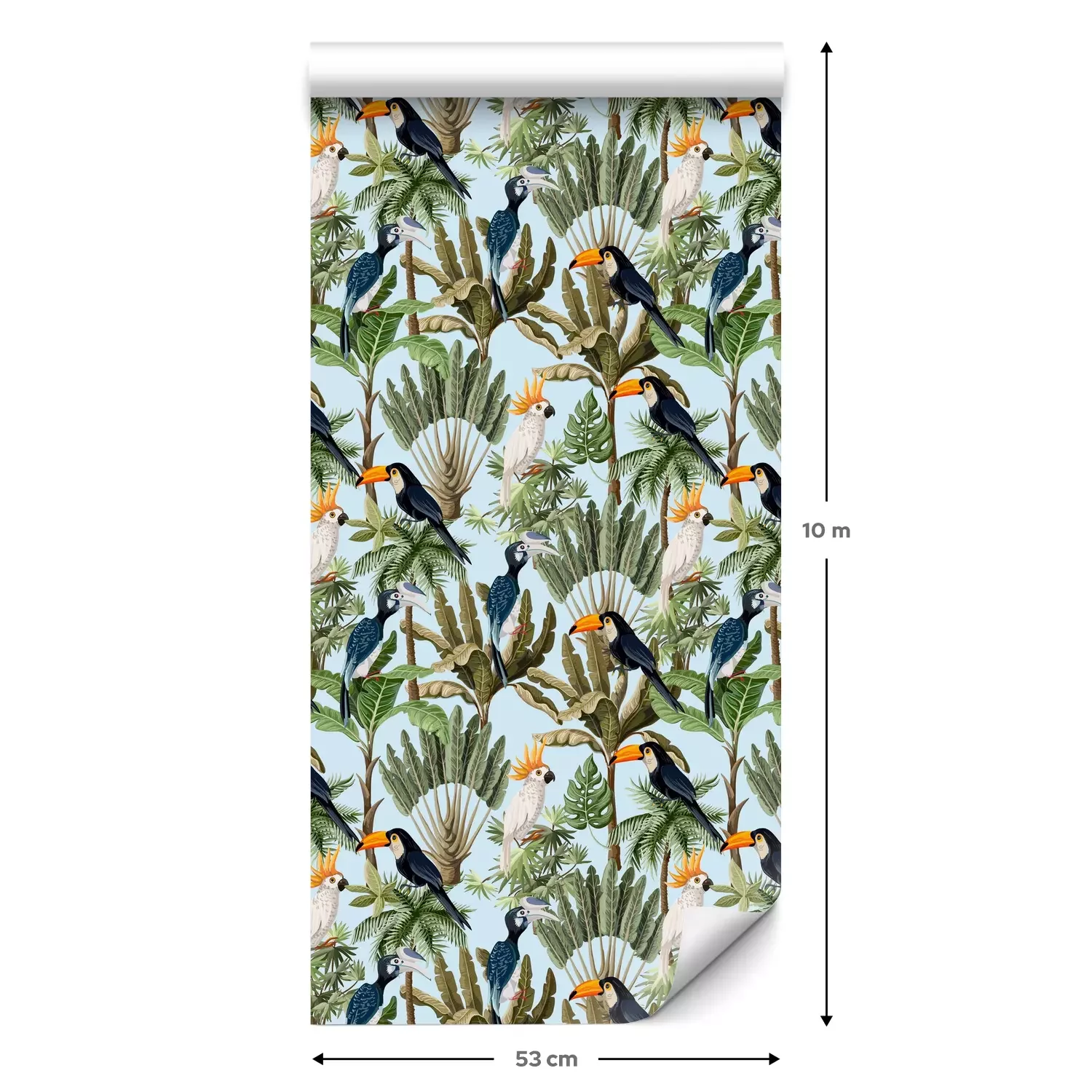 Een standaardrol behang heeft een afmeting van 0,53 m x 10 m, wat voldoende is om ongeveer 5 m² muur te bedekken.