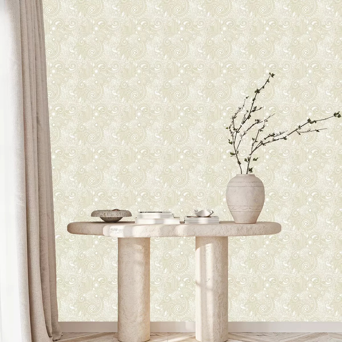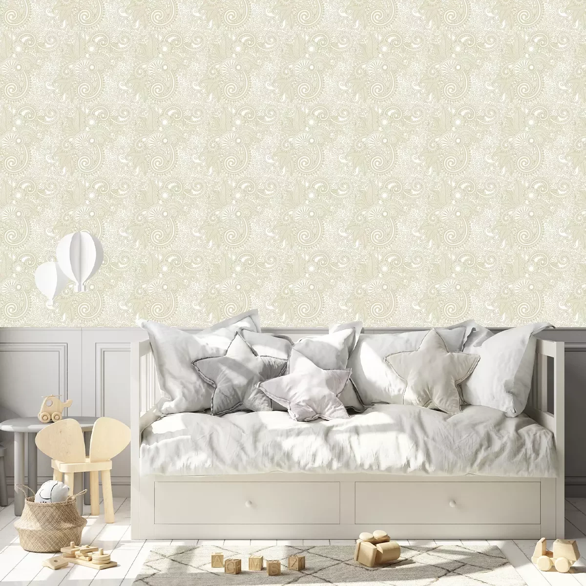 Breng je interieur naar de betoverende wereld van patronen met onze unieke collectie behang met patronen. Onze behangpatronen in een beige kleur combineert subtiliteit en elegantie, en geeft leven aan je slaapkamer en woonkamer, vooral als je een boho-stijl wilt creëren. Het patroon van het behang patronen is een eerbetoon aan het beroemde paisley-patroon, bekend om zijn delicate lijnen en elegante bochten. De beige contouren op een witte achtergrond vormen een harmonieuze combinatie die rust en lichtheid aan de ruimte toevoegt. Dit is de perfecte oplossing voor mensen die een ontspannen en gezellige sfeer in hun huis willen creëren. Ons behang patronen past perfect in de slaapkamer, waar het een romantische tint toevoegt en een knusse omgeving creëert die bevorderlijk is voor rust. Elke avond kun je je onderdompelen in een oase van rust en ontspannen te midden van de zachte patronen. Laten we ook de woonkamer niet vergeten, waar dit patroonbehang een ware blikvanger wordt. In de boho-stijl, met zijn natuurlijke materialen en etnische accenten, voegt het behang patronen een uniek karakter en subtiliteit toe. Het vormt een aangename achtergrond voor je favoriete meubels en decoraties, en creëert een ruimte die harmonie en individualiteit uitstraalt. Ons aangeboden patroon behang is niet alleen verrassend origineel, maar kenmerkt zich ook door de hoogste kwaliteit. We gebruiken duurzame en milieuvriendelijke materialen om niet alleen een esthetische uitstraling te garanderen, maar ook langdurige duurzaamheid. Verander je woning tot een hoger stijlniveau en druk je creativiteit uit met ons behang patronen. Geef je slaapkamer en woonkamer een unieke uitstraling die je individuele stijl weerspiegelt. Neem de uitnodiging aan om in de wereld van behang goud patroon te stappen en creëer een ruimte waar elk oogblik je vreugde en inspiratie zal zorgen.