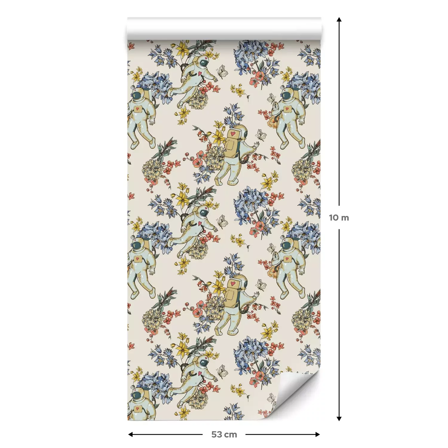 Een standaardrol behang heeft een afmeting van 0,53 m x 10 m, wat voldoende is om ongeveer 5 m² muur te bedekken.