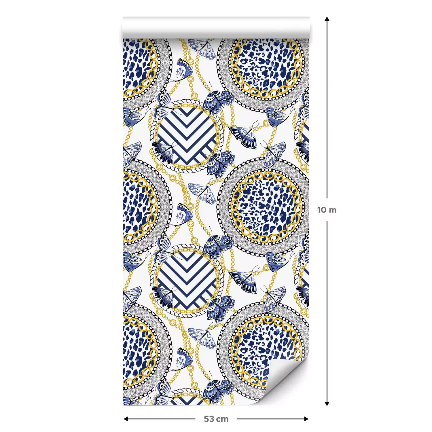 Een standaardrol behang heeft een afmeting van 0,53 m x 10 m, wat voldoende is om ongeveer 5 m² muur te bedekken.