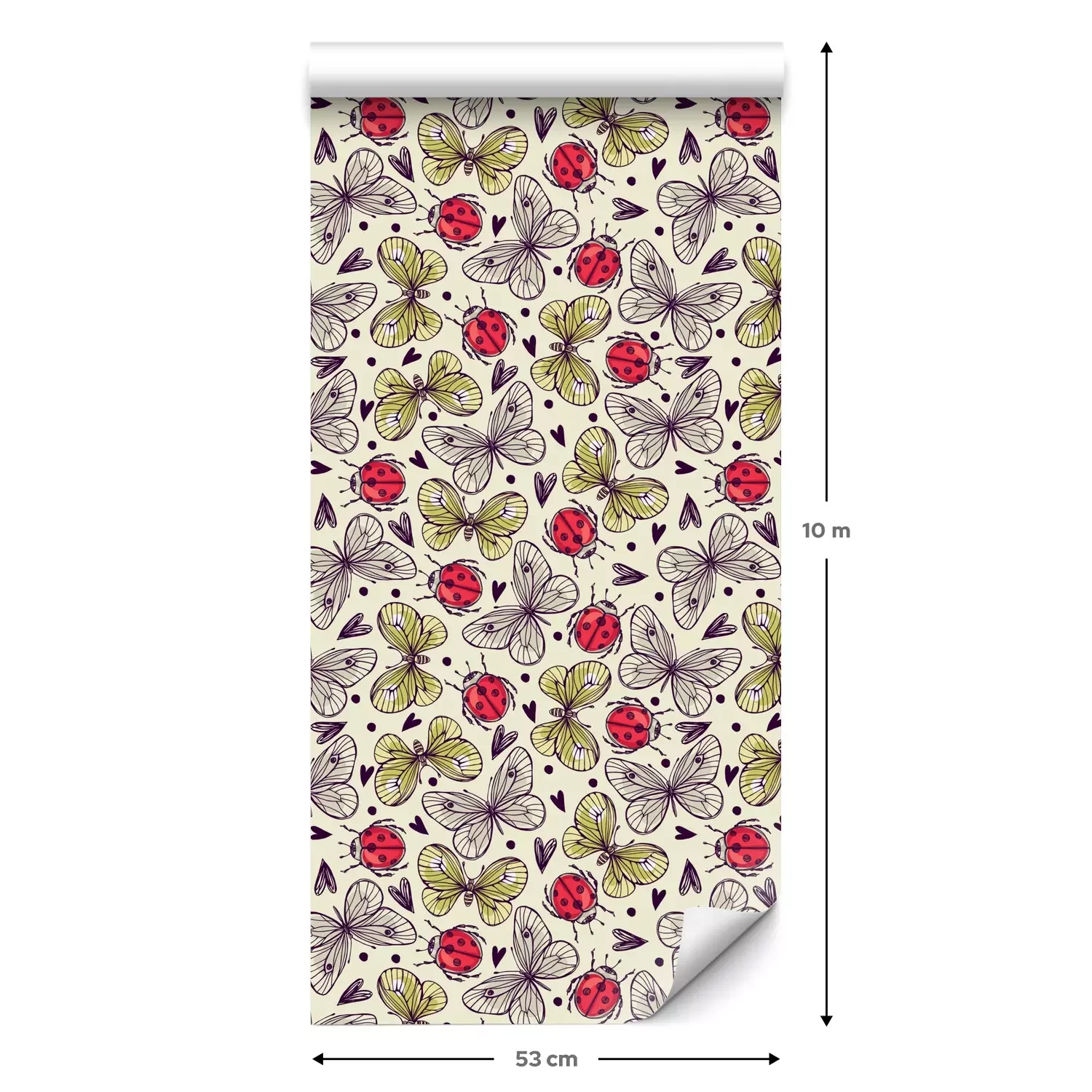 Een standaardrol behang heeft een afmeting van 0,53 m x 10 m, wat voldoende is om ongeveer 5 m² muur te bedekken.