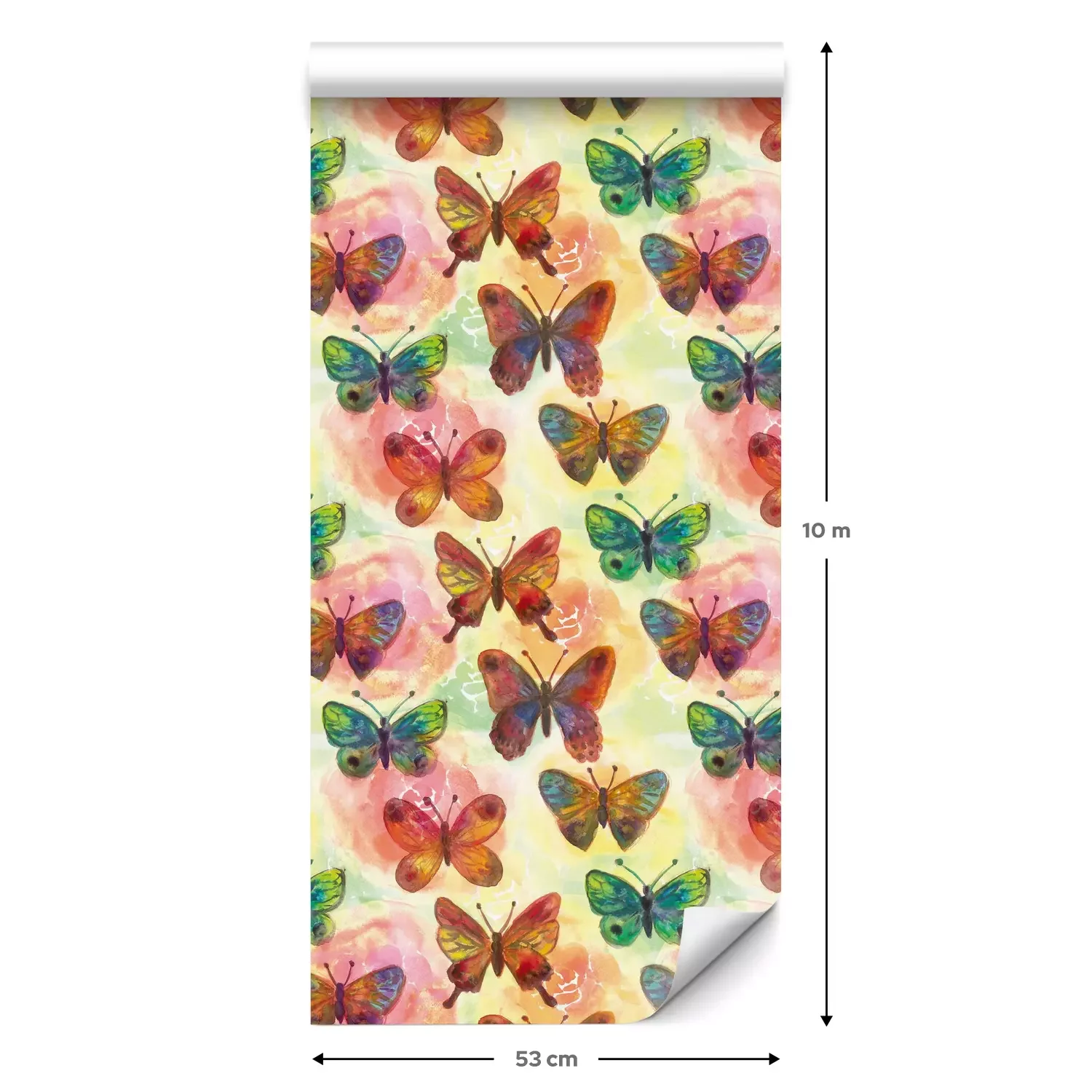 Een standaardrol behang heeft een afmeting van 0,53 m x 10 m, wat voldoende is om ongeveer 5 m² muur te bedekken.