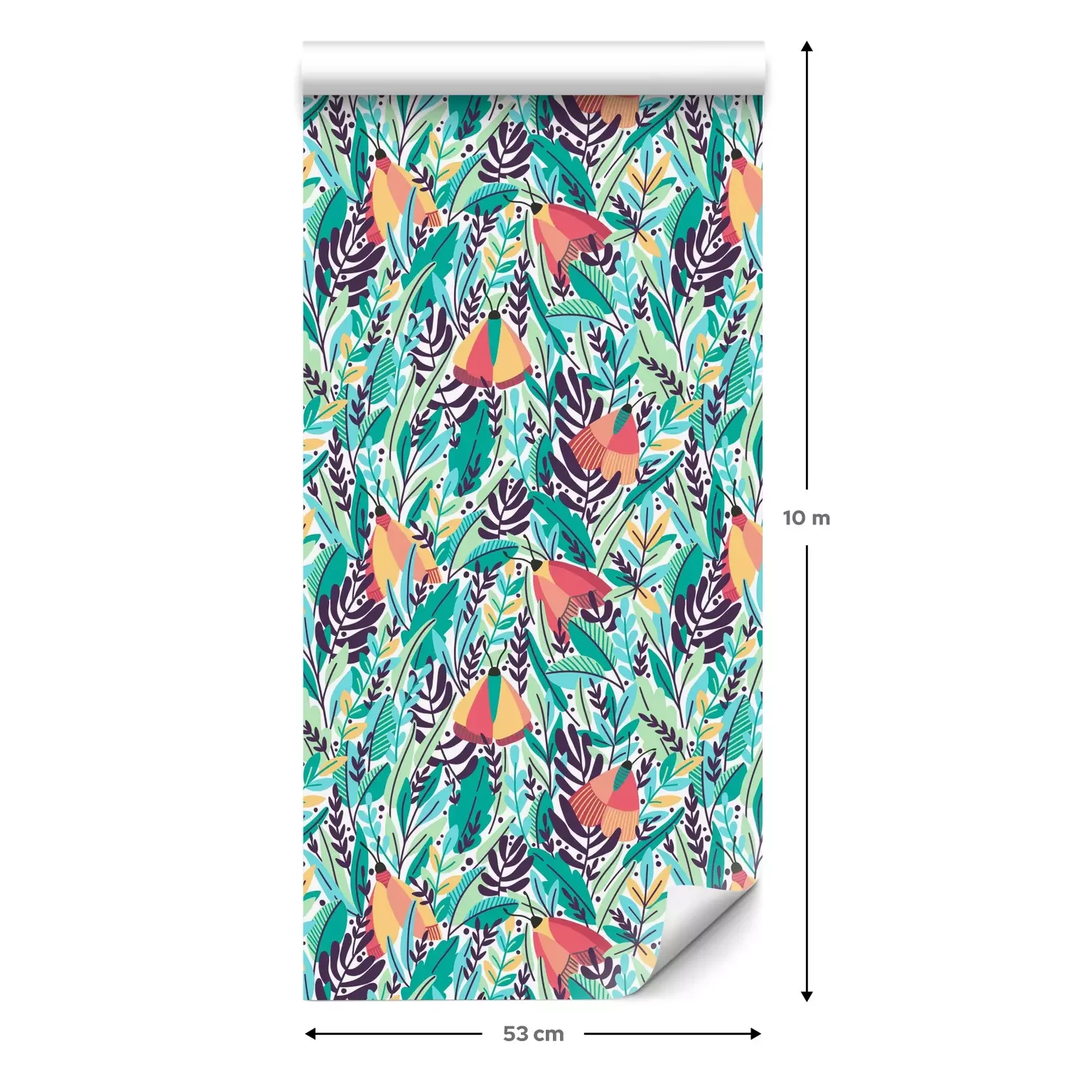 Een standaardrol behang heeft een afmeting van 0,53 m x 10 m, wat voldoende is om ongeveer 5 m² muur te bedekken.