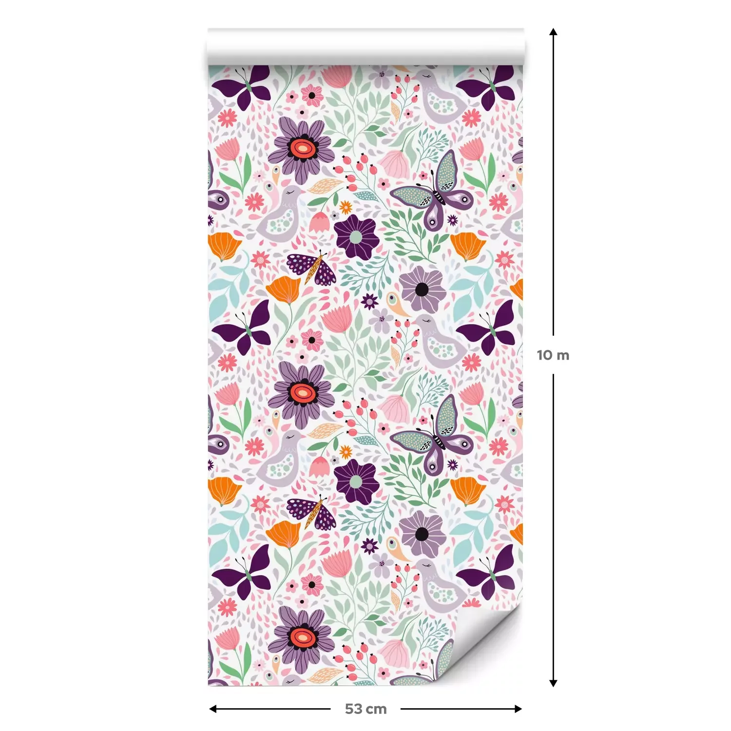 Een standaardrol behang heeft een afmeting van 0,53 m x 10 m, wat voldoende is om ongeveer 5 m² muur te bedekken.