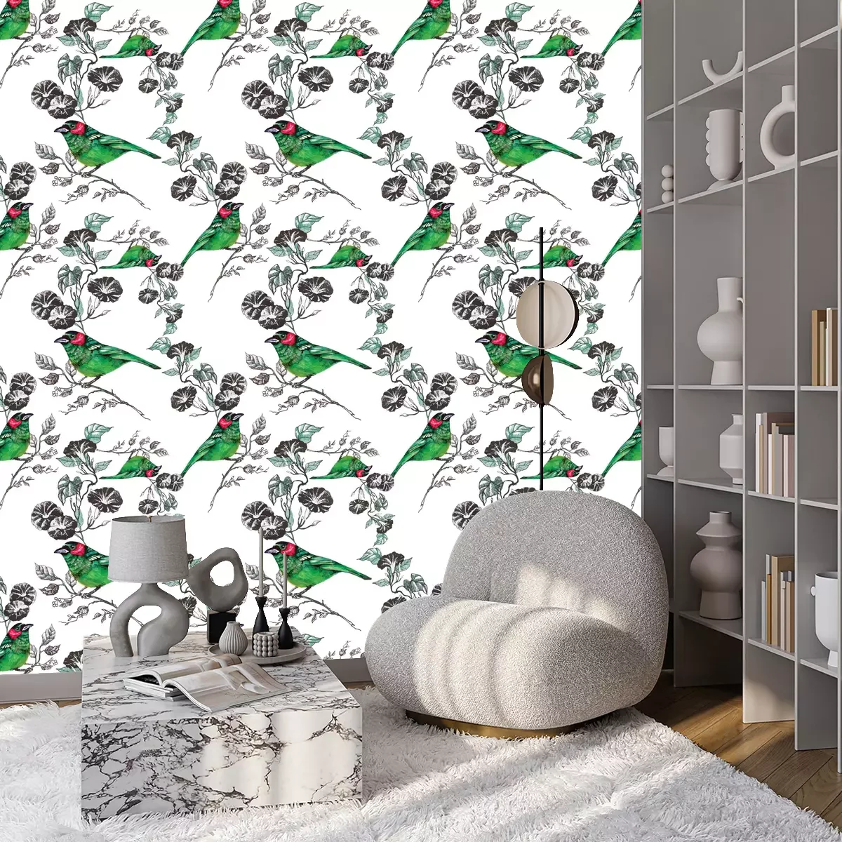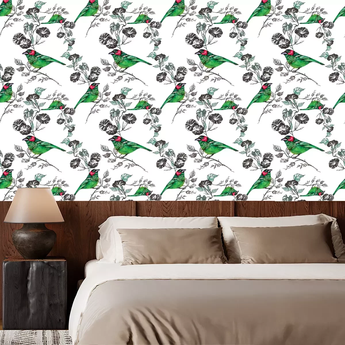 Paradijspatroon met vogelsProbleemloze bezorging verzorgd door vertrouwde vervoerders