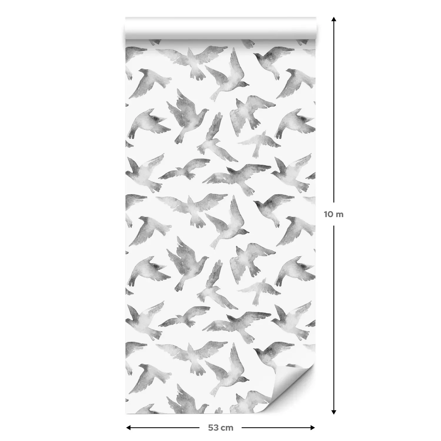 Een standaardrol behang heeft een afmeting van 0,53 m x 10 m, wat voldoende is om ongeveer 5 m² muur te bedekken.
