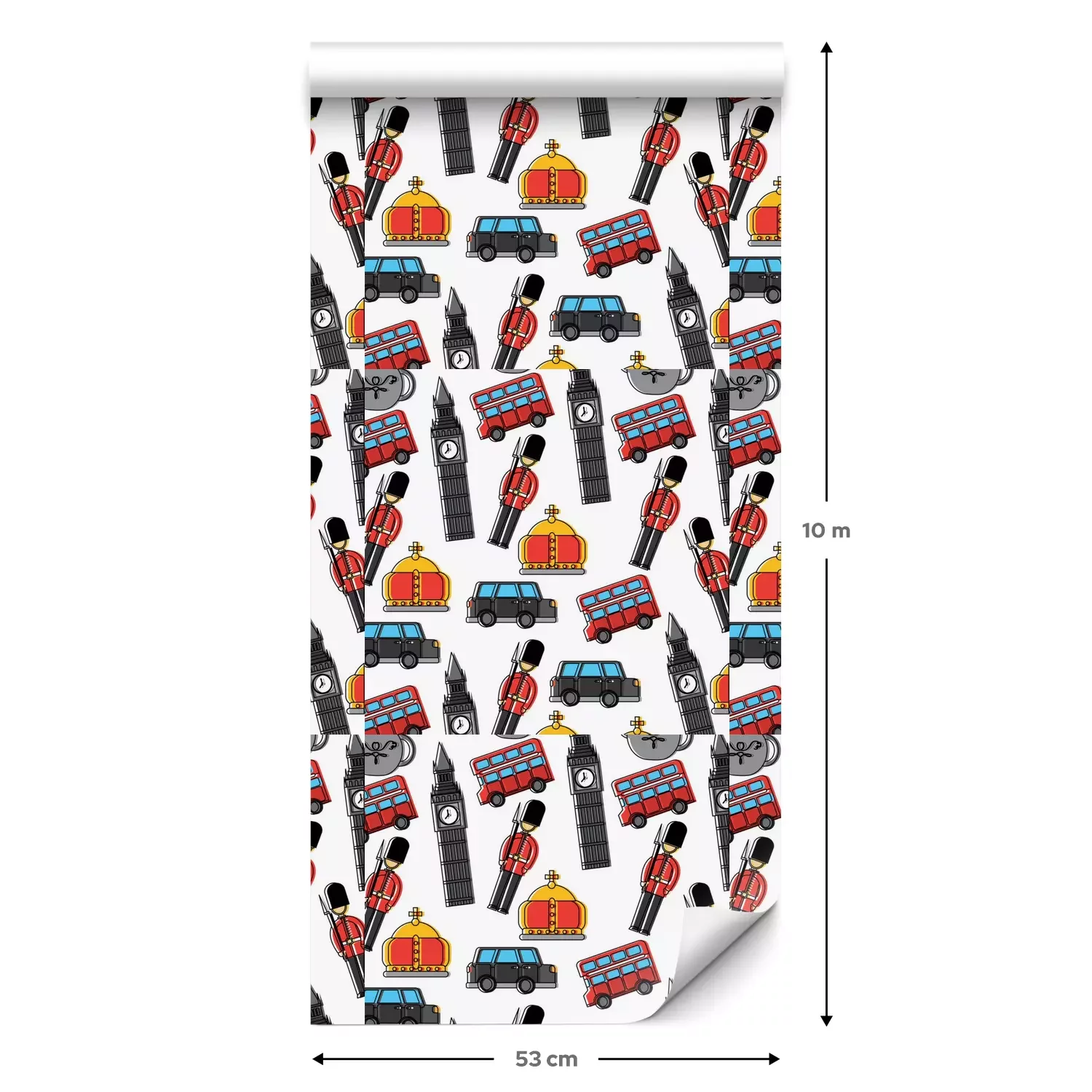 Een standaardrol behang heeft een afmeting van 0,53 m x 10 m, wat voldoende is om ongeveer 5 m² muur te bedekken.