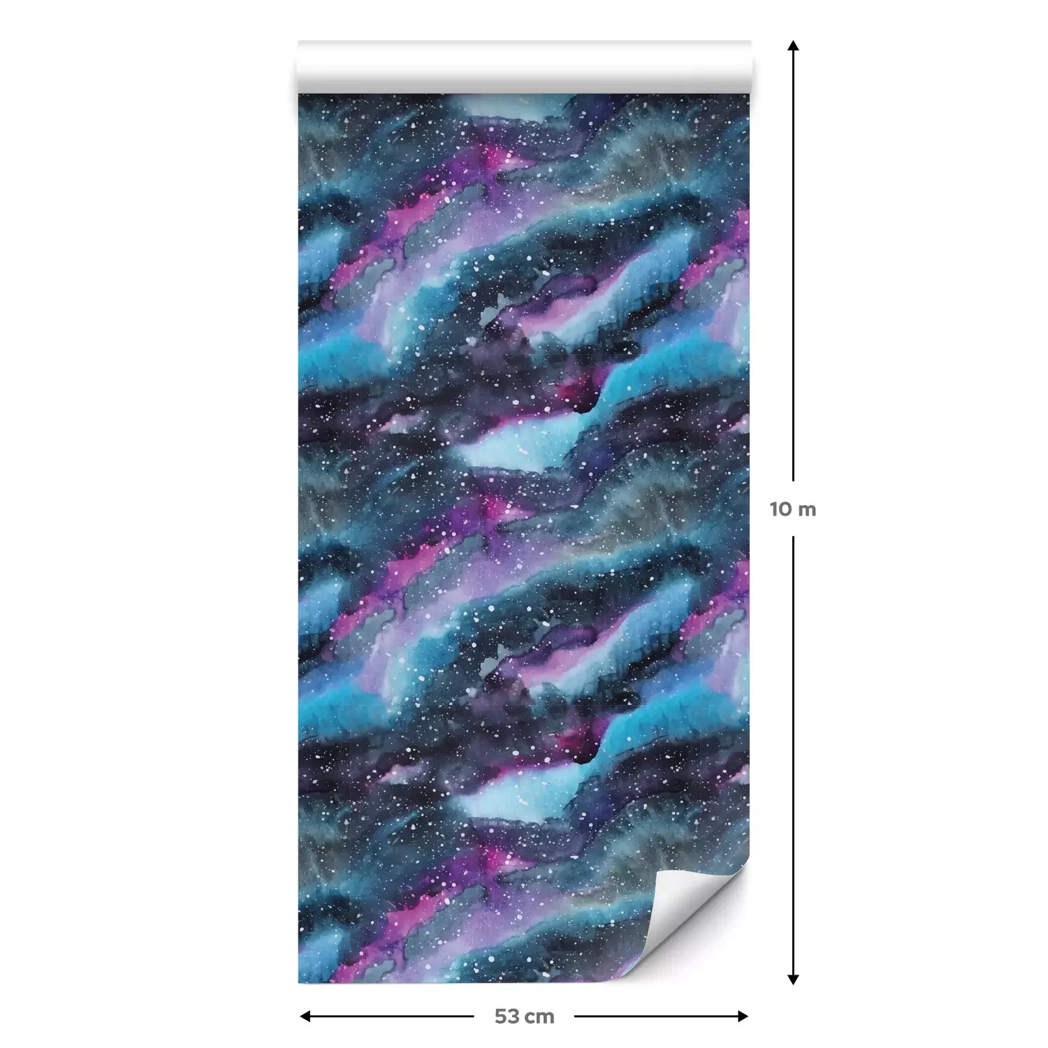 Een standaardrol behang heeft een afmeting van 0,53 m x 10 m, wat voldoende is om ongeveer 5 m² muur te bedekken.