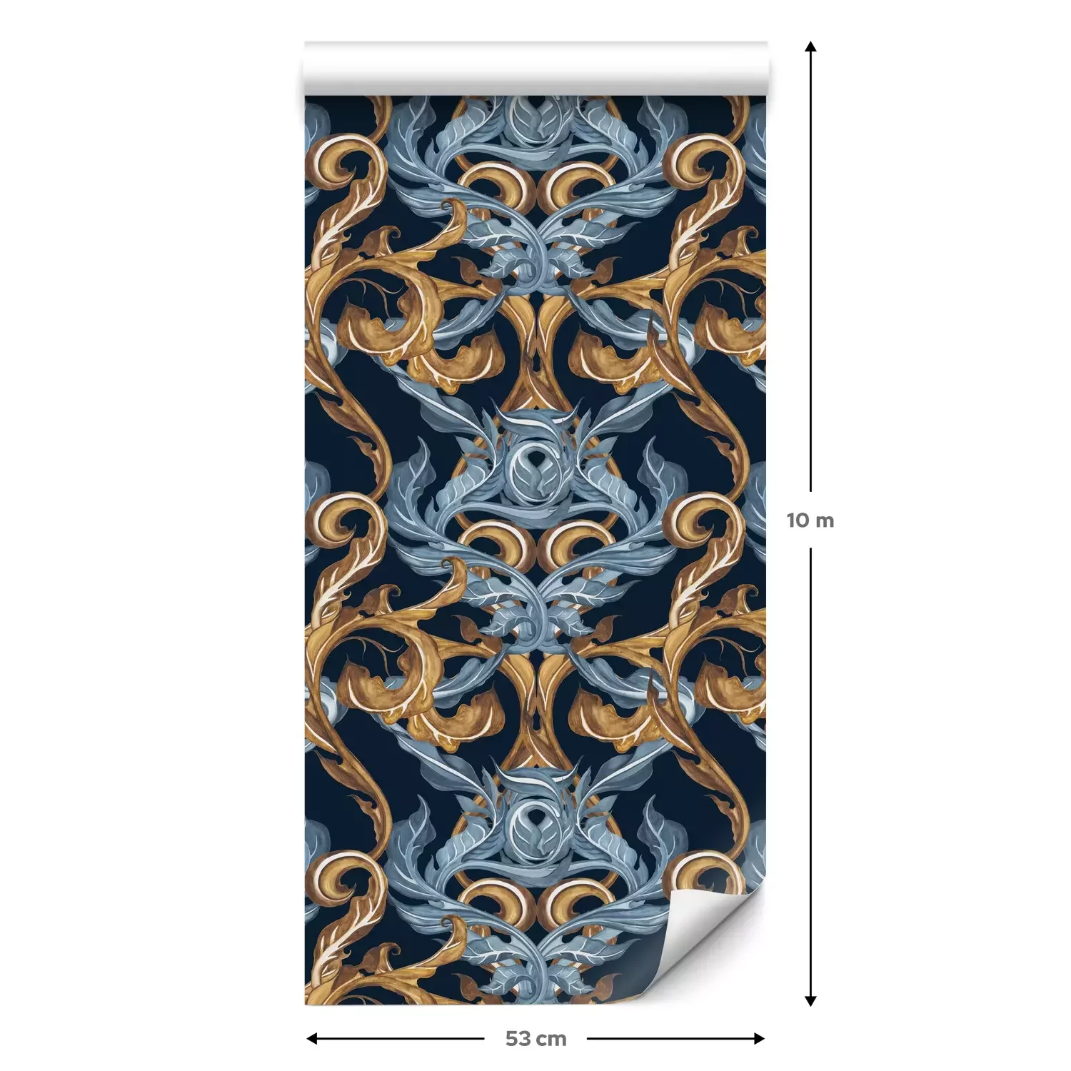 Een standaardrol behang heeft een afmeting van 0,53 m x 10 m, wat voldoende is om ongeveer 5 m² muur te bedekken.